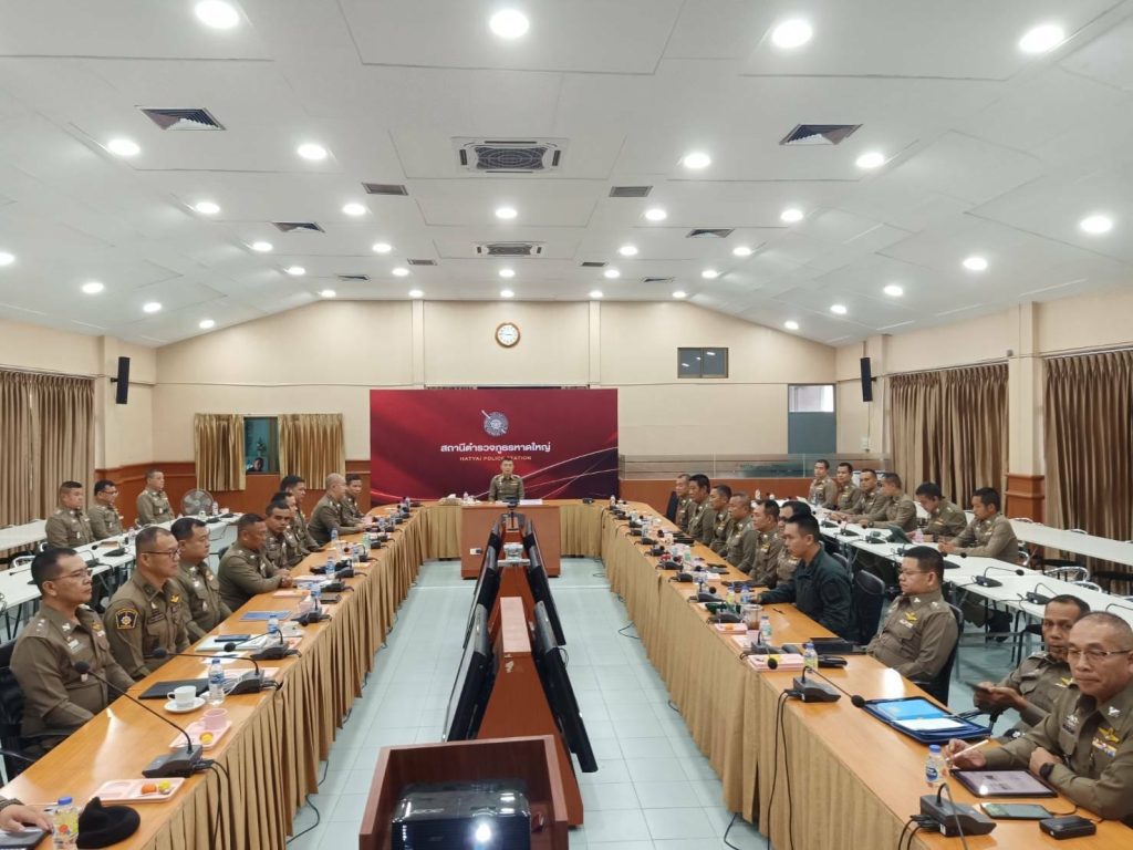เมื่อวันที่ 23 พ.ย. 2566 เวลา 14.00 น. พล.ต.ต.เชาวลิต เลี้ยงสุพงศ์ ผบก.ภ.จว.สงขลา พร้อมด้วย พ.ต.อ.กิตติชัย สังขถาวร รอง ผบก.ภ.จว.สงขลา , พ.ต.อ.อลงกรณ์ ศิริสงคราม รอง ผบก.ภ.จว.สงขลา , ผกก.ฝอ.ฯ , ผกก.สส.ฯ , ผกก.(สอบสวน)กลุ่มงานสอบสวนฯ , ผกก.ปพ.ฯ , พ.ต.อ.ธรรมรัตน์ เพชรหนองชุม ผกก.สภ.เทพา และหัวหน้า สภ. / ผู้แทน หน.สภ.ในสังกัด ภ.จว.สงขลา ร่วมประชุมบริหารสำนักงานตำรวจแห่งชาติ ครั้งที่ 8/2566 กับ ตร.