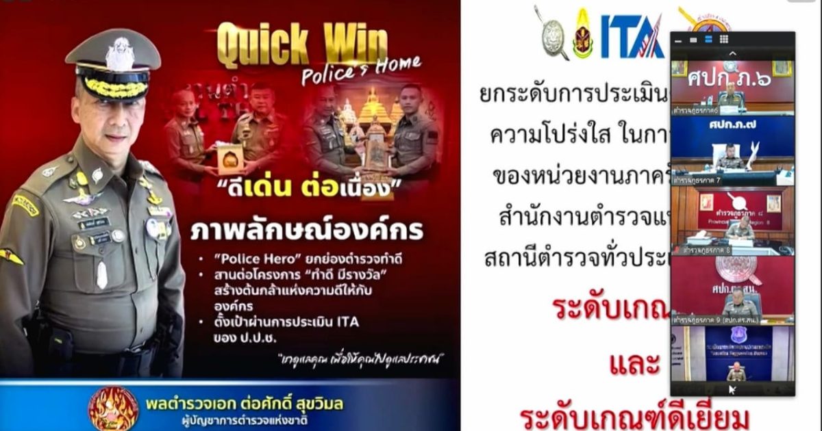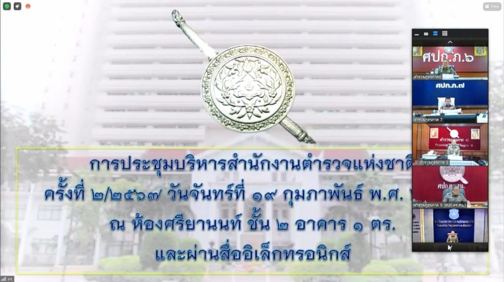 ประชุมบริหาร ตร. 20 กุมภาพันธ์ 2567 โดย thepha / ข่าวภารกิจผู้บังคับบัญชา เมื่อวันที่ 19 ก.พ. 2567 เวลา 14.00 น. พ.ต.อ.ธรรมรัตน์ เพชรหนองชุม ผกก.สภ.เทพา ร่วมรับฟังการประชุมบริหารสำนักงานตำรวจแห่งชาติ ครั้งที่ 2/2567 ประจำปีงบประมาณ พ.ศ. 2567 . โดยมี ตร./พล.ต.อ.ต่อศักดิ์ สุขวิมล ผบ.ตร. เป็นประธาน ภ.9/พล.ต.ต.เอกกฤต วิริยะภาพ ผบก.อก.ภ.9 เป็นประธาน สงขลา/พล.ต.ต.เชาวลิต เลี้ยงสุพงศ์ ผบก.ภ.จว.สงขลา เป็นประธาน . ผ่านระบบการประชุมทางไกล (Video Conference/Join Zoom Meeting) ณ ห้องประชุม ศปก.สภ.เทพา
