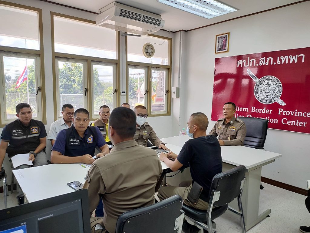 พ.ต.ต.หญิง รัตณา มะหันตะกิจ สว.อก.สภ.เทพา และเจ้าหน้าที่ตำรวจที่เกี่ยวข้องในการดำเนินงาน