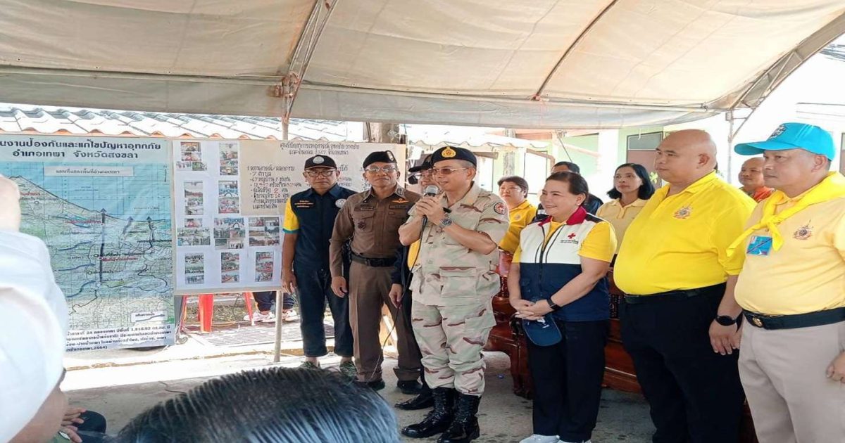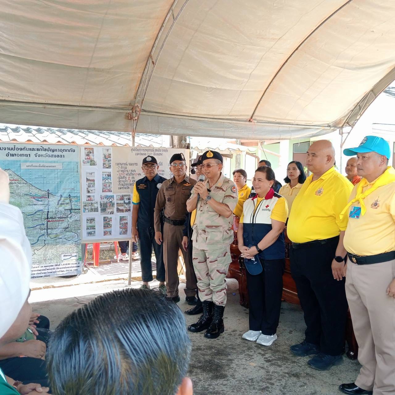 ร่วมให้การต้อนรับ นายโชตินรินทร์ เกิดสม ผู้ว่าราชการจังหวัดสงขลา พร้อมด้วย นางปวีณ์ริศา เกิดสม ประธานแม่บ้านมหาดไทยจังหวัดสงขลา และ นายวิทยา จันทน์เสนะ รองผู้ว่าราชการจังหวัดสงขลา และคณะ เดินทางมาเพื่อประเมินความเสียหายจากเหตุการณ์น้ำท่วมที่เกิดขึ้นในพื้นที่ อำเภอเทพา ร่วมประกอบอาหารโรงครัวพระราชทาน แจกจ่ายแก่ประชาชนผู้ได้รับผลกระทบจากสถานการณ์น้ำท่วม พบปะพูดคุยเป็นกำลังใจพร้อมกับนำถุงยังชีพจำนวนหนึ่งเพื่อแจกจ่ายให้กับประชาชนที่ได้รับผลกระทบจากเหตุน้ำท่วมโดยตรง