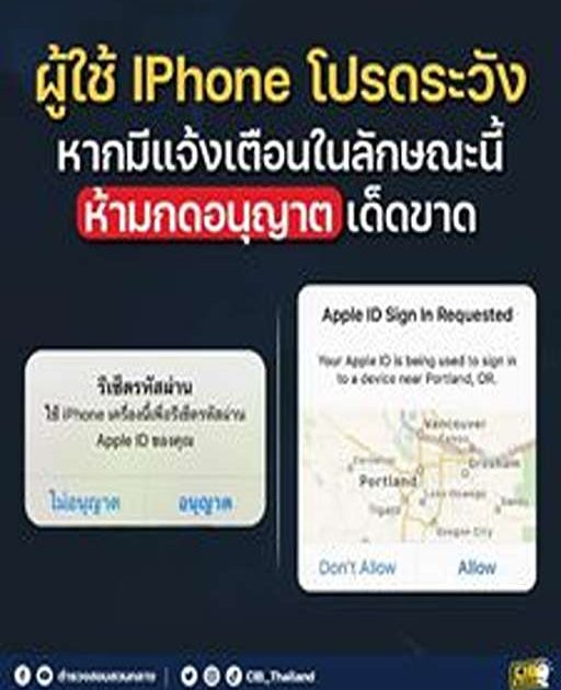 หรือ มีข้อความว่า “Apple ID Sign in Requested” มีการแจ้งว่ามีการเข้าระบบของ Apple โดยที่เราไม่ได้เข้าระบบ และมีการแสดงตำแหน่งแปลกๆ ที่เราไม่เคยไป หรืออยู่ต่างประเทศ