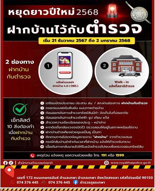 ปีใหม่นี้หยุดยาว ฝากบ้านไว้ให้ตำรวจช่วยดูแล