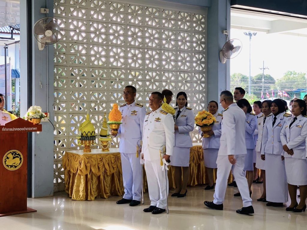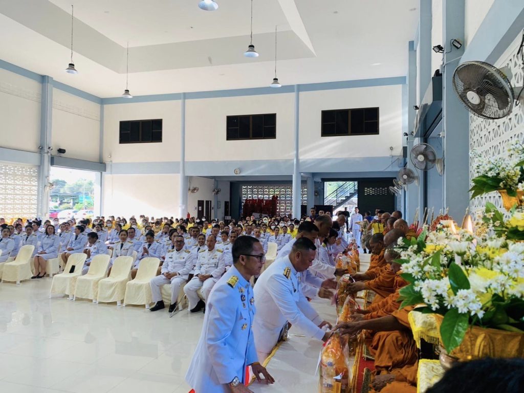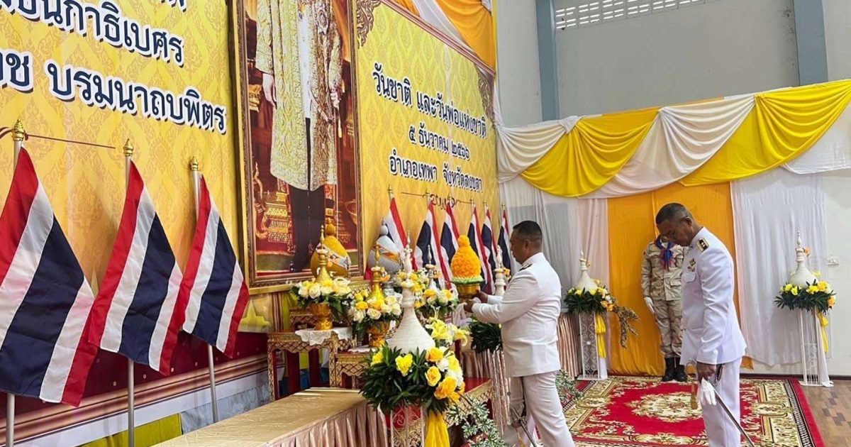 เมื่อวันที่ 5 ธ.ค. 2566 เวลา 07.00 น. พ.ต อ.ธรรมรัตน์ เพชรหนองชุม ผกก.สภ.เทพา พร้อมด้วย พ.ต.ท.วรรณพงษ์ วงษ์สุวรรณ รอง ผกก.สส.สภ.เทพา , พ.ต.ท.พิสิทธิ์ โรจชะยะ สวป.สภ.เทพา , พ.ต.ต.หญิง รัตณา มะหันตะกิจ สว.อก.สภ.เทพา ข้าราชการและแม่บ้านตำรวจ ร่วมพิธีเจริญพระพุทธมนต์ ทำบุญตักบาตรถวายพระราชกุศล วางพานพุ่มดอกไม้ น้อมสำนึกในพระมหากรุณาธิคุณ เนื่องในวันคล้ายวันพระบรมราชสมภพ พระบาทสมเด็จพระบรมชนกาธิเบศร มหาภูมิพลอดุลยเดชมหาราช บรมนาถบพิตร วันชาติ และวันพ่อแห่งชาติ 5 ธันวาคม 2566 ณ หอประชุมที่ว่าการอำเภอเทพา โดยมี นายเอกชัย แก้วรัตนะ นายอำเภอเทพา เป็นประธาน