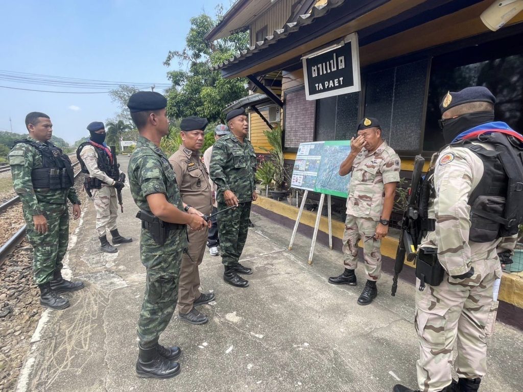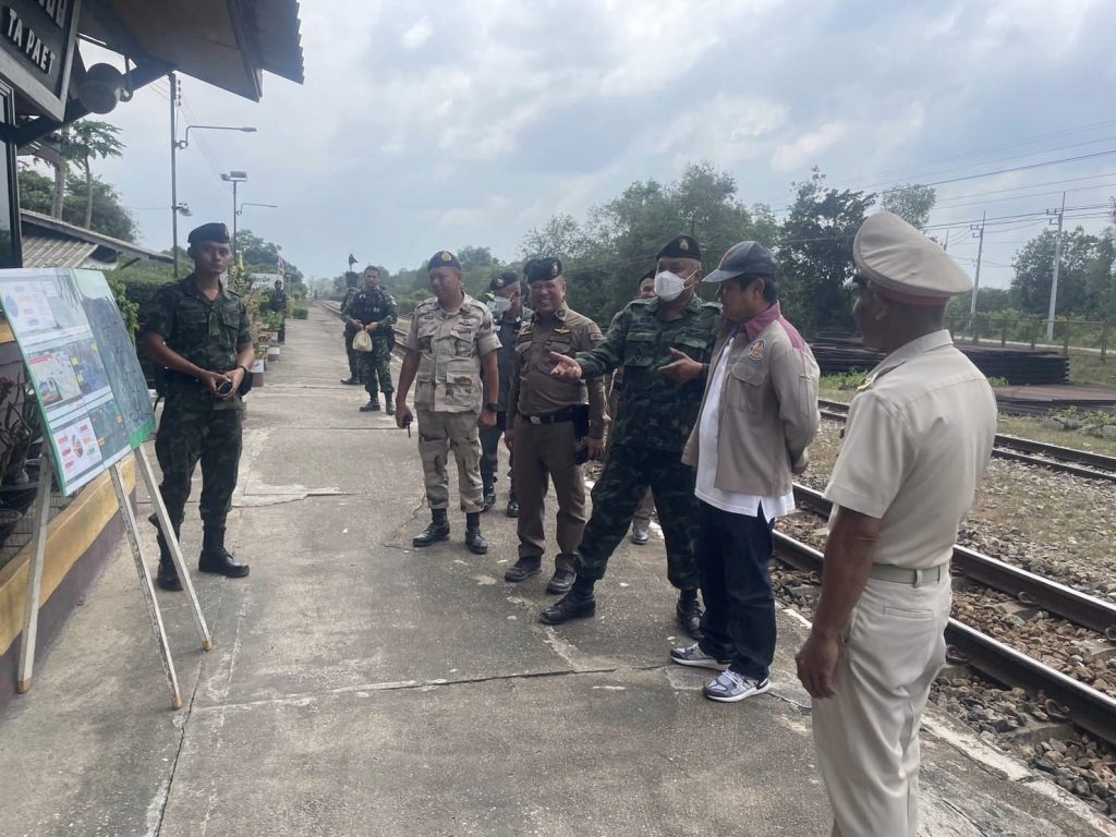 เมื่อวันที่ 27 ก.พ. 2566 เวลา 11.30 น. กำลังบูรณาการหน่วยงานความมั่นคง 3 ฝ่าย ตำรวจ ทหาร ฝ่ายปกครอง และพนักงานประจำสถานีรถไฟ บัณฑิตอาสา นำโดย พ.อ.ยุทธนาม เพชรม่วง รอง ผบ.ฉก.สงขลา , พ.ต.อ.ธรรมรัตน์ เพชรหนองชุม ผกก.สภ.เทพา , พ.ต.ท.สุรเดช เส็นยีหีม รอง ผกก.ป.สภ.เทพา , พ.ต.ท.พิสิทธิ์ โรจชะยะ สวป.สภ.เทพา , นายสมศักดิ์ ชูศรี ปลัดอำเภอเทพา ทำหน้าที่ ผบ.ร้อย อส.ควบคุมเส้นทางรถไฟ