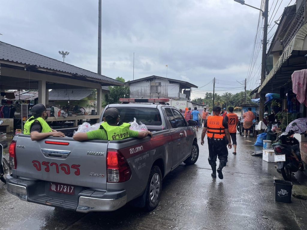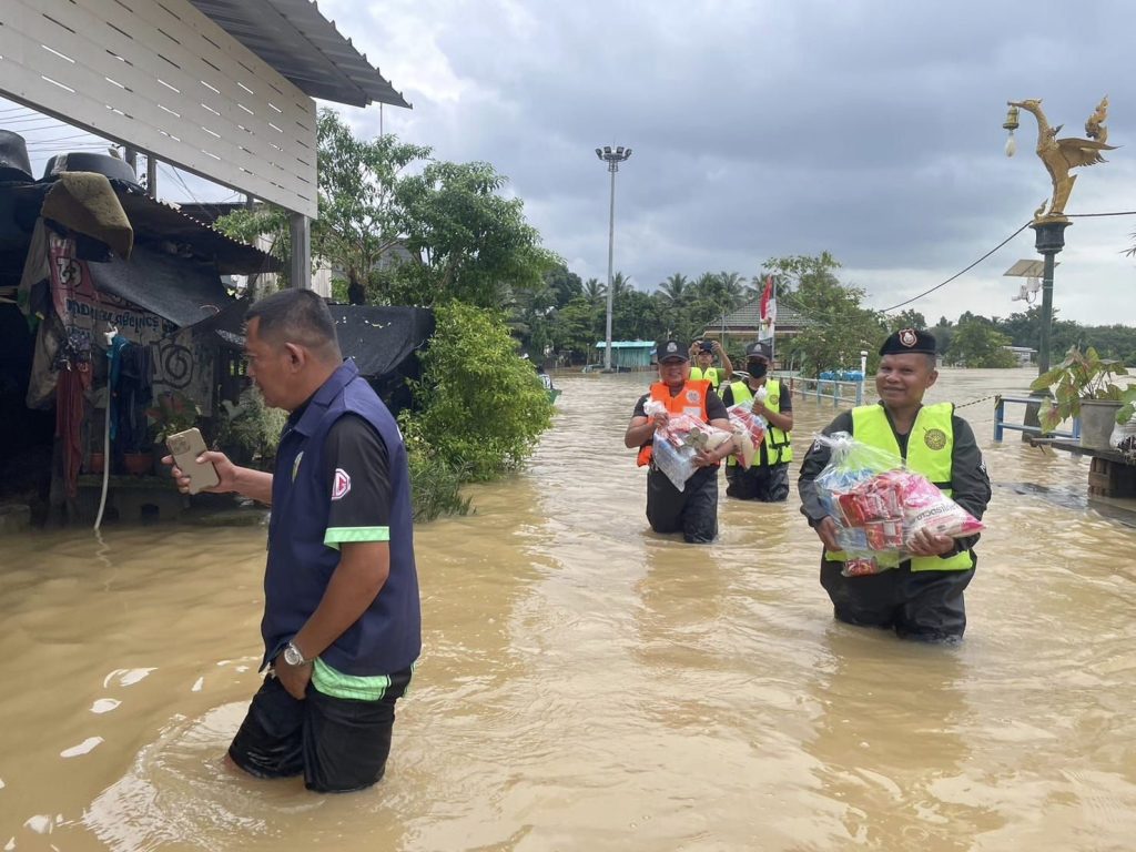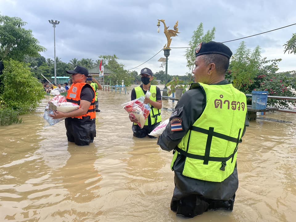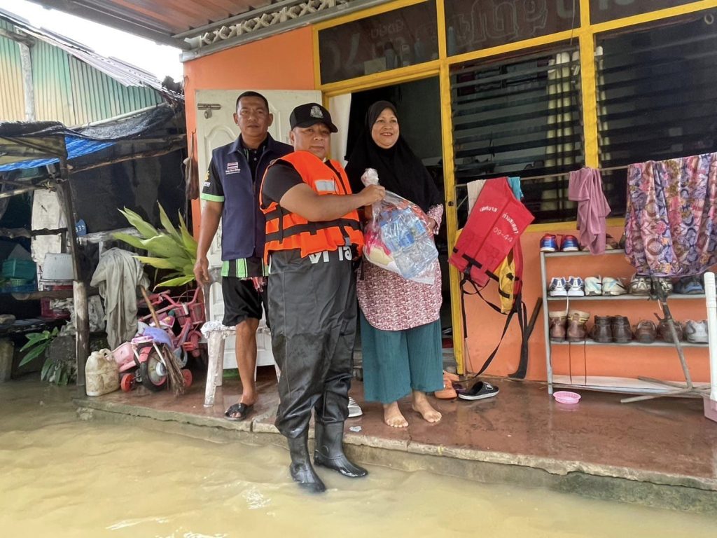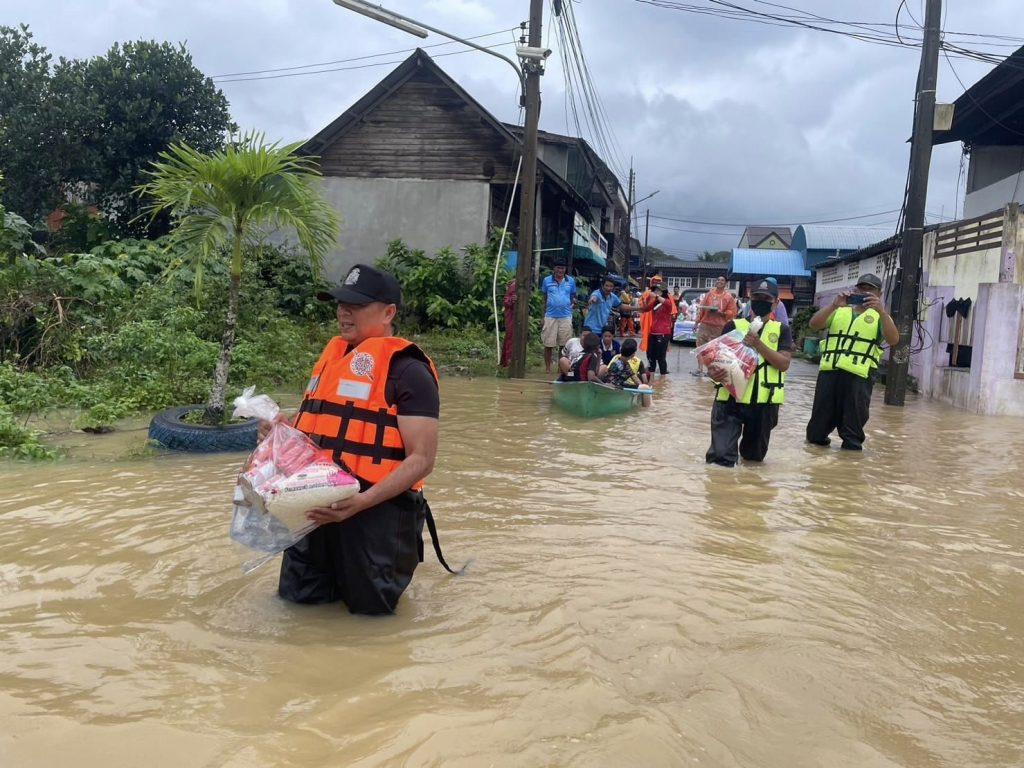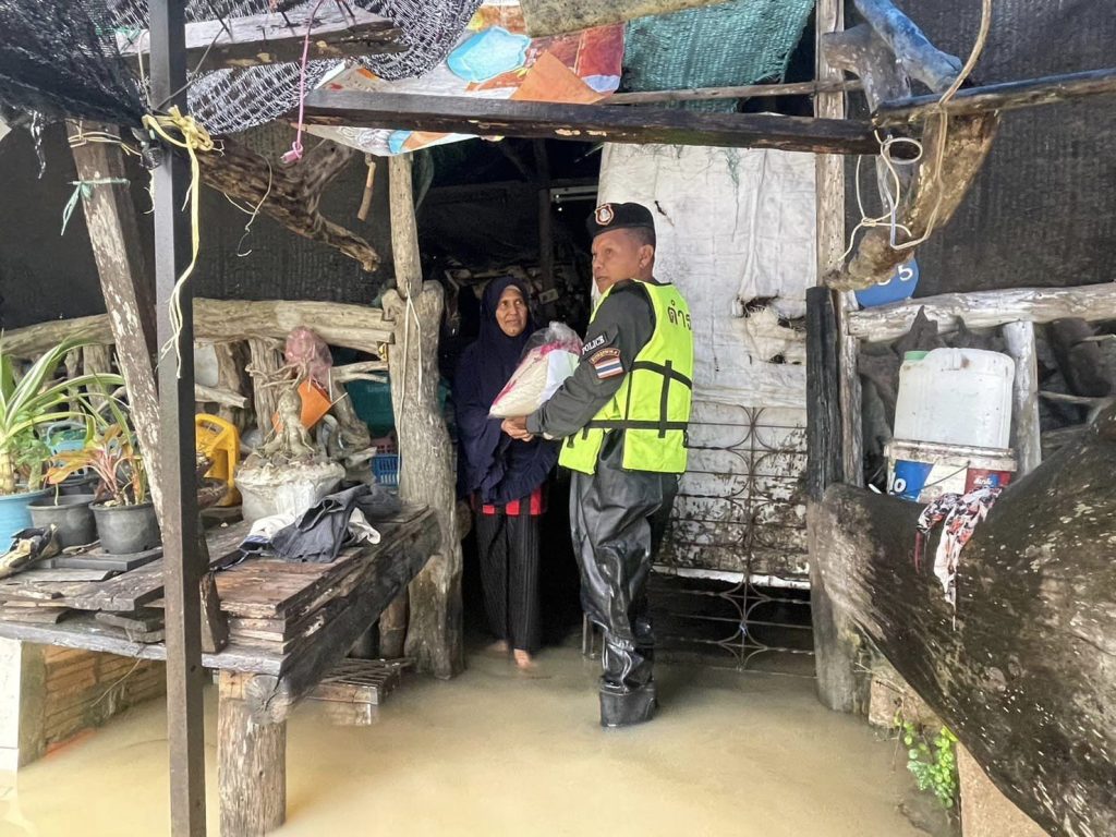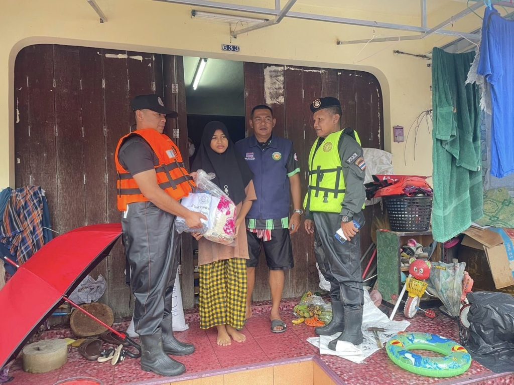เมื่อวันที่ 21 ธ.ค. 2565 เวลา 13.30 น. พ.ต.อ.ธรรมรัตน์ เพชรหนองชุม ผกก.สภ.เทพา พร้อมด้วย พ.ต.ท.นิติ ทองชูช่วย สวป.สภ.เทพา และกำลังตำรวจชุดปฏิบัติการช่วยเหลือผู้ประสบภัยน้ำท่วม สภ.เทพา ร่วมกับ นายเฉลิมพล ทิพย์มณี นายกเทศมนตรีเทศบาลตำบลเทพา เจ้าหน้าที่ ทหาร และฝ่ายปกครอง ลงพื้นที่ให้ความช่วยเหลือมอบสิ่งของอุปโภค-บริโภค เพื่อเป็นกำลังใจแก่ประชาชนที่ได้รับความเดือดร้อนจากเหตุอุทกภัยฝนตกหนักต่อเนื่อง ทำให้น้ำไหลเข้าท่วมบ้านเรือน พื้นที่ ริมแม่น้ำเทพา เทศบาล ต.เทพา อ.เทพา จว.สงขลา