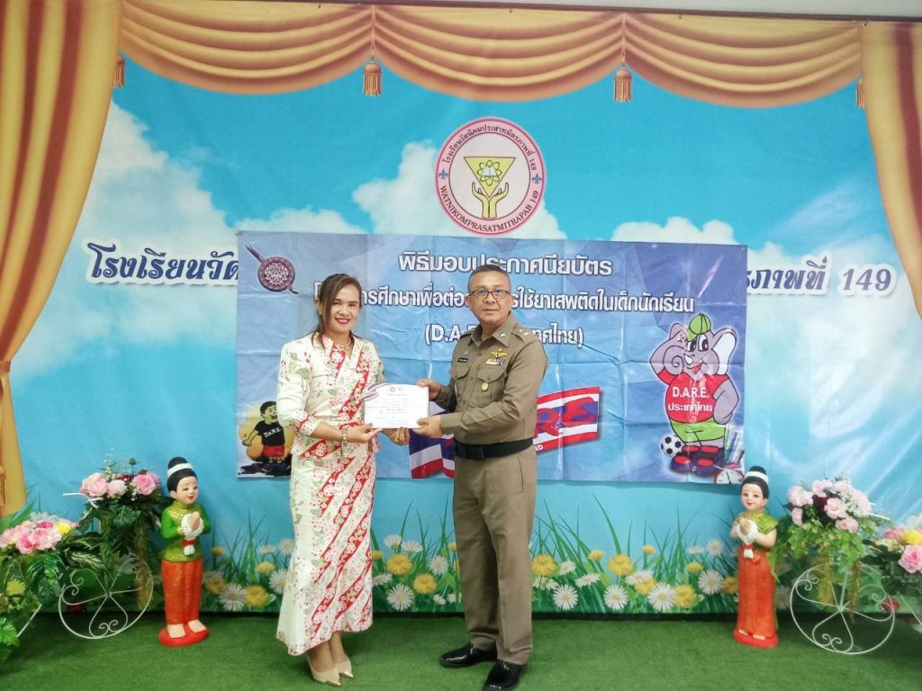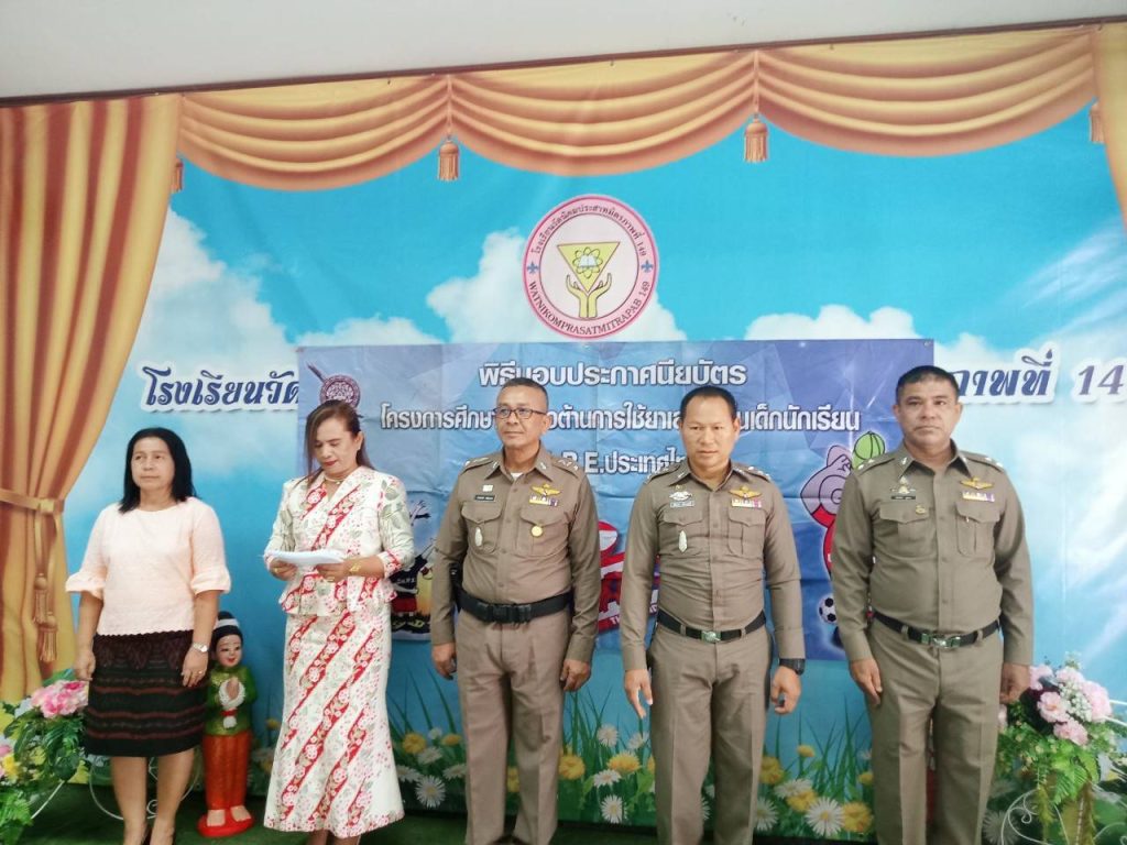 มอบประกาศนียบัตร ตามโครงการครูตำรวจแดร์ (D.A.R.E) 13 กุมภาพันธ์ 2567 โดย thepha / ข่าวประชาสัมพันธ์,ข่าวกิจกรรม เด็กรุ่นใหม่ ไม่เกี่ยวข้องยาเสพติดมอบประกาศนียบัตรตามโครงการครูตำรวจแดร์ (D.A.R.E) เมื่อวันที่ 13 ก.พ. 2567 เวลา 10.00 น. พ.ต.อ.ธรรมรัตน์ เพชรหนองชุม ผกก.สภ.เทพา มอบหมายให้ พ.ต.ท.วรรณพงษ์ วงษ์สุวรรณ รอง ผกก.สส.สภ.เทพา และครูตำรวจแดร์ ประจำ สภ.เทพา ร่วมพิธีมอบประกาศนียบัตรแก่นักเรียนผู้สำเร็จหลักสูตร โครงการการศึกษาเพื่อต่อต้านการใช้ยาเสพติดในเด็กนักเรียน(D.A.R.E. ประเทศไทย) ชั้นประถมปีที่ 5 รร.วัดนิคมประสาทมิตรภาพที่ 149 ต.เกาะสะบ้า อ.เทพา จว.สงขลา #เสริมภูมินักเรียน_ห่างไกลยาเสพติด