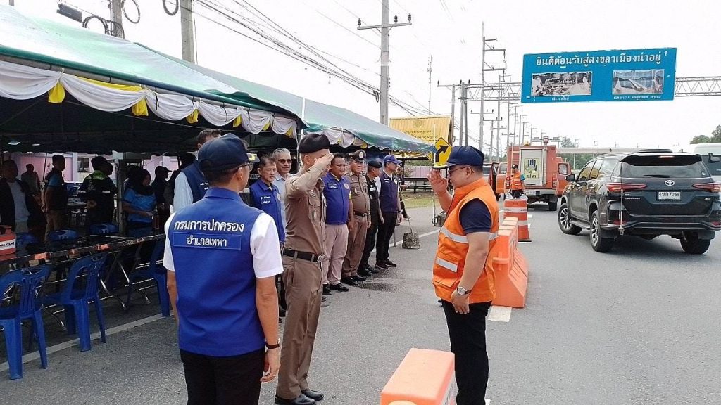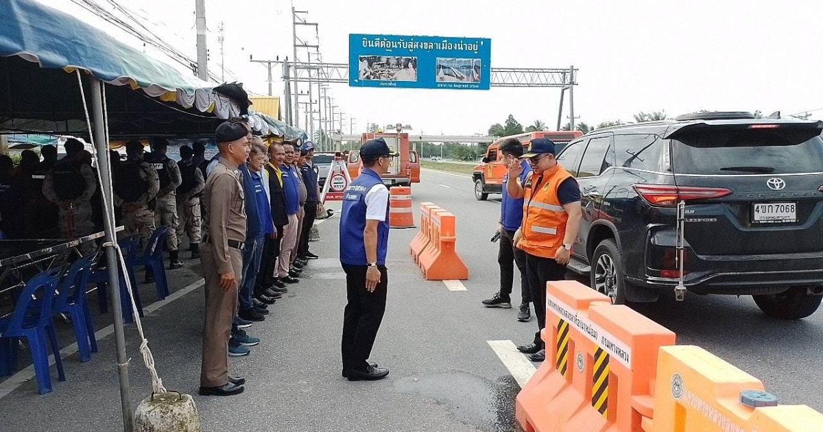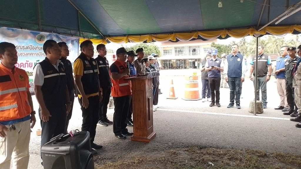 ร่วมต้อนรับ นายเศวต เพชรนุ้ย รองผู้ว่าราชการจังหวัดสงขลา และคณะ เดินทางเยี่ยมเยียนเจ้าหน้าที่ประจำจุดตรวจ สร้างขวัญกำลังใจพร้อมมอบสิ่งของและอุปกรณ์ต่าง ๆ ให้กับเจ้าหน้าที่ประจำจุดตรวจเพื่อใช้ในการปฏิบัติหน้าที่ตามโครงการรณรงค์การป้องกันและลดอุบัติเหตุทางถนนในช่วงเทศกาลปีใหม่ 2567 ณ จุดตรวจ หน้า รร.บ้านกรงอิตำ ถนนสาย 43 (ปัตตานี-หาดใหญ่) หมู่ 4 ต.เกาะสะบ้า อ.เทพา จว.สงขลา