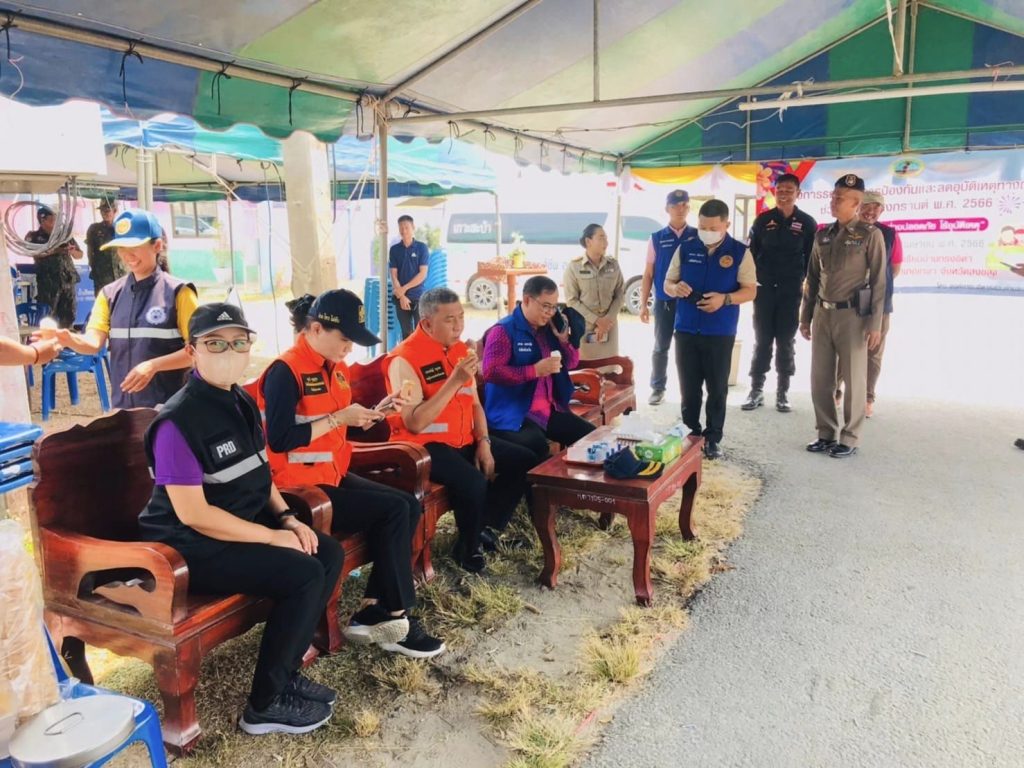 เมื่อวันที่ 11 เม.ย. 2566 เวลา 14.00 น. พ.ต.อ.ธรรมรัตน์ เพชรหนองชุม ผกก.สภ.เทพา มอบหมายให้ พ.ต.ท.สุรเดช เส็นยีหีม รอง ผกก.ป.สภ.เทพา พร้อมด้วย พ.ต.ท.นิติ ทองชูช่วย สวป.สภ.เทพา ร่วมต้อนรับคณะ นายวรณัฏฐ์ หนูรอด รองผู้ว่าราชการจังหวัดสงขลา เดินทางเยี่ยมเยียนเจ้าหน้าที่ประจำจุดตรวจ ตามโครงการรณรงค์การป้องกันและลดอุบัติเหตุทางถนนในช่วงเทศกาลสงกรานต์ พ.ศ.2566 สร้างขวัญกำลังใจให้กับเจ้าหน้าที่ ตำรวจ ทหาร ฝ่ายปกครอง สาธารณะสุข และจิตอาสา ประจำจุดบริการ ณ จุดตรวจ หน้า รร.บ้านกรงอิตำ ถนนสาย 43 (ปัตตานี-หาดใหญ่) หมู่ 4 ต.เกาะสะบ้า อ.เทพา จว.สงขลา