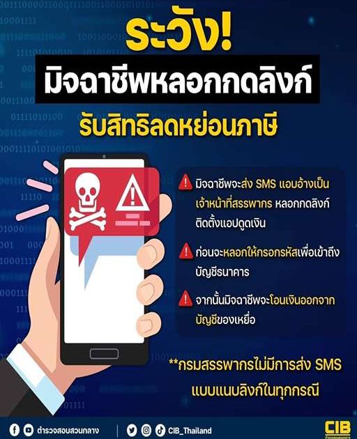 กรมสรรพากรจะไม่มีการส่ง SMS แบบแนบลิงก์ในทุกกรณี !!