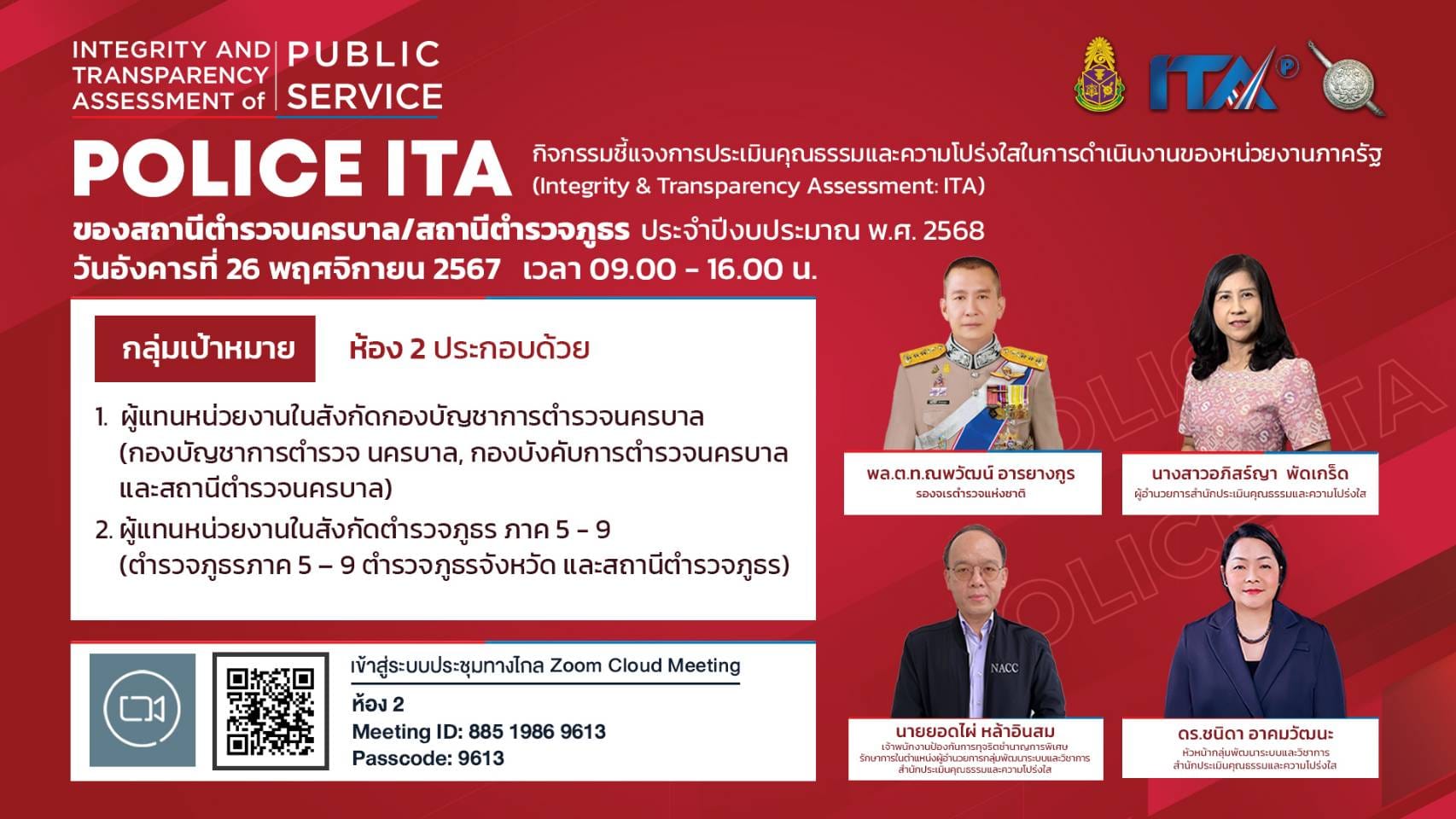 ร่วมกิจกรรมชี้แจงการประเมินคุณธรรมและความโปร่งใสในการดำเนินงานของหน่วยงานภาครัฐ (Integrity & Transparency Assessment:ITA) ของ สถานีตำรวจนครบาล และสถานีตำรวจภูธร ประจำปีงบประมาณ พ.ศ.2568
