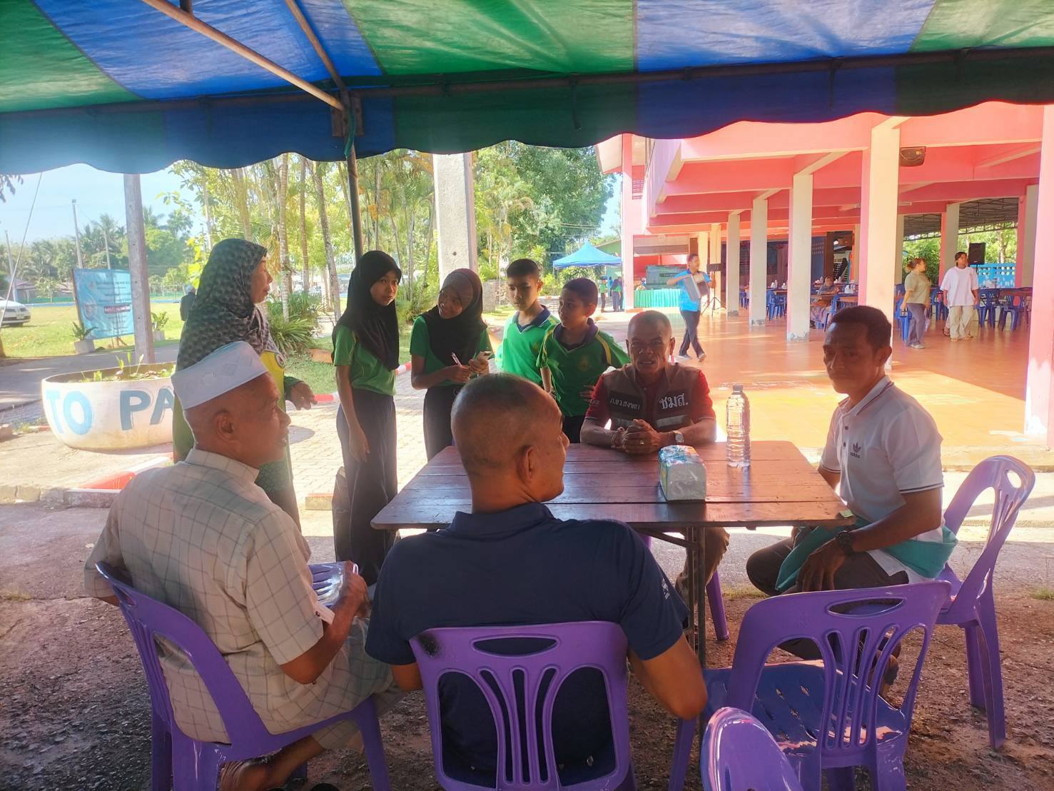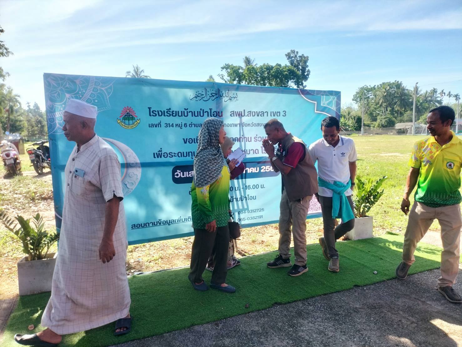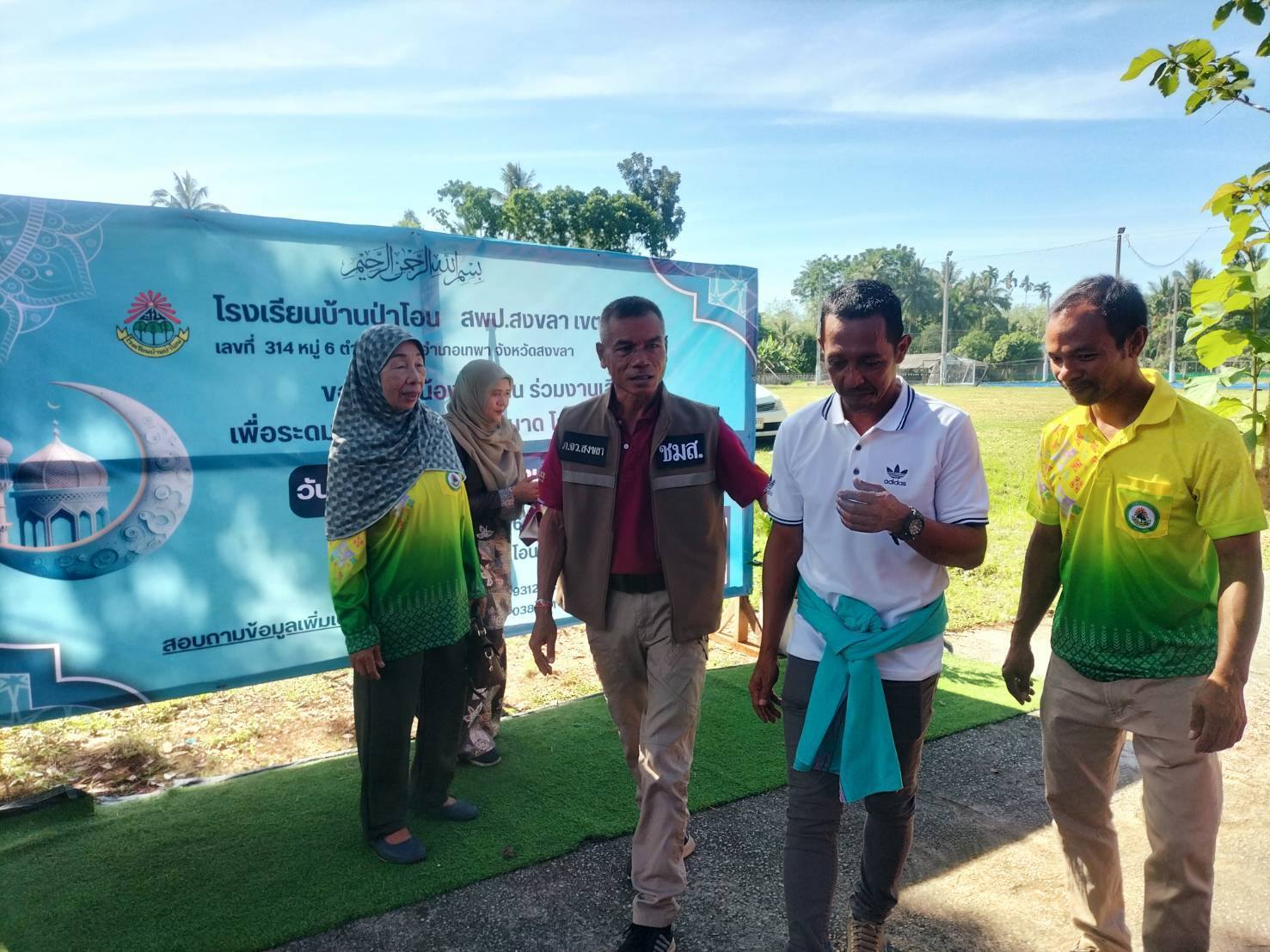 ออกพบปะผู้นำท้องถิ่น ผู้นำศาสนาและประชาชนในพื้นที่ พูดคุยประสานการปฏิบัติ ร่วมงานเลี้ยงและสมทบทุนเพื่อระดมทุนสร้างห้องละหมาด รร.บ้านป่าโอน หมู่ 6 พระพุทธ ต.เทพา อ.เทพา จว.สงขลา