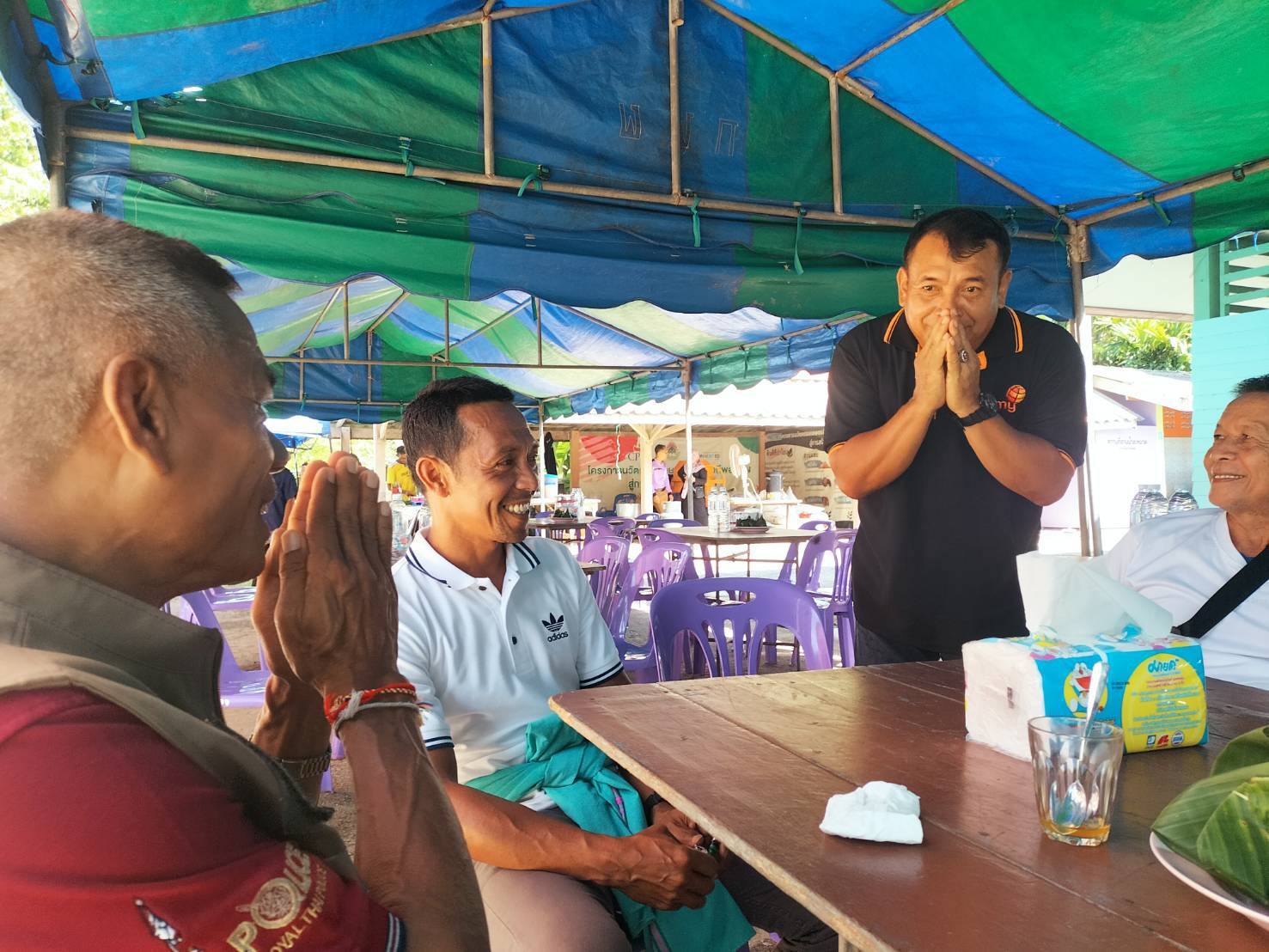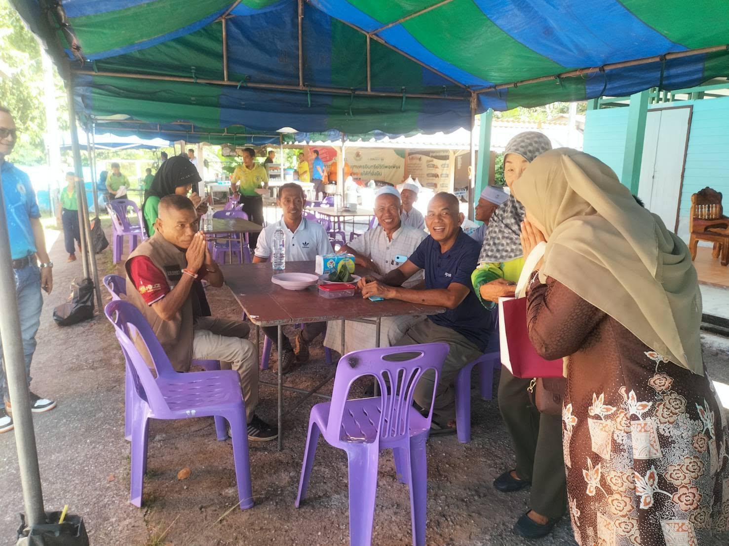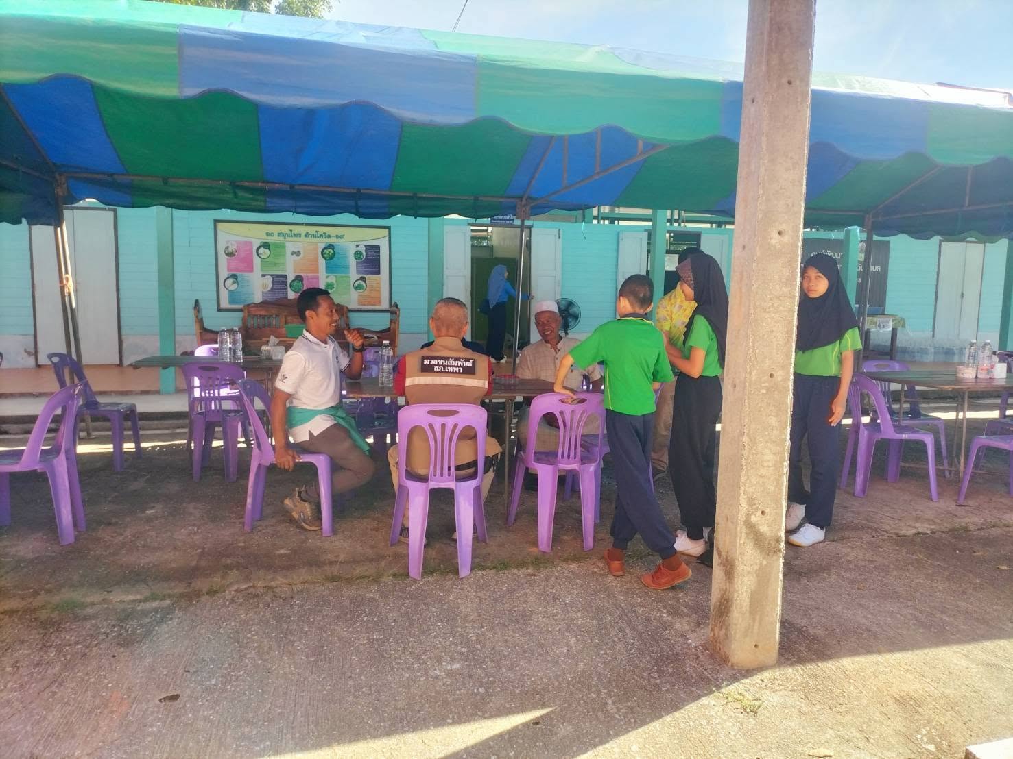 ออกพบปะผู้นำท้องถิ่น ผู้นำศาสนาและประชาชนในพื้นที่ พูดคุยประสานการปฏิบัติ ร่วมงานเลี้ยงและสมทบทุนเพื่อระดมทุนสร้างห้องละหมาด รร.บ้านป่าโอน หมู่ 6 พระพุทธ ต.เทพา อ.เทพา จว.สงขลา