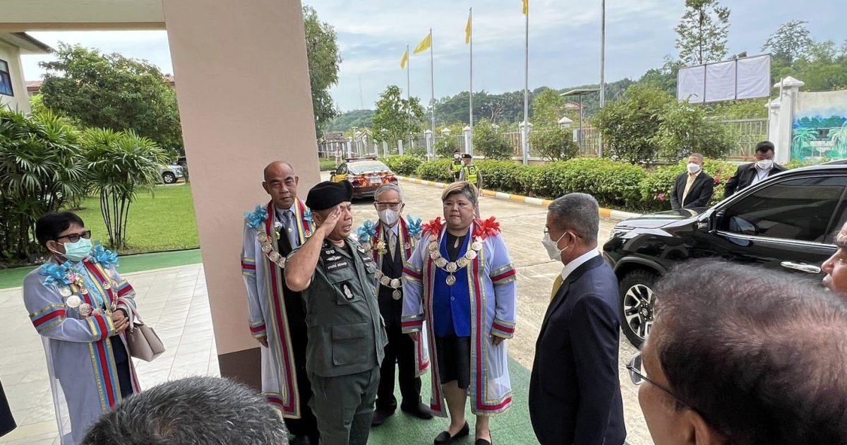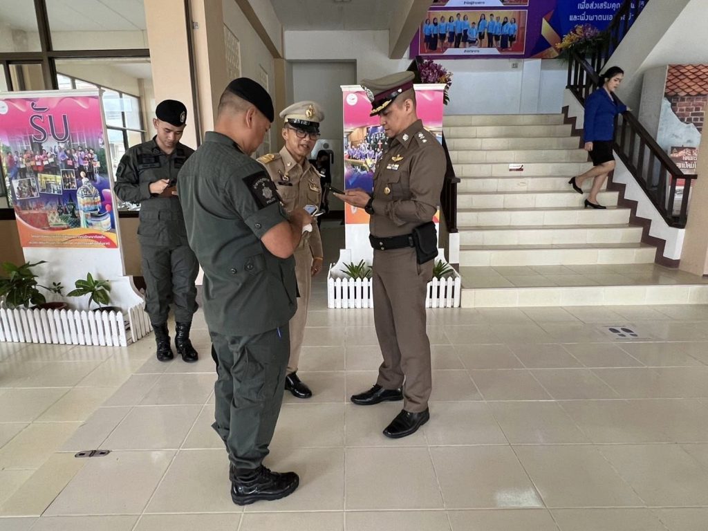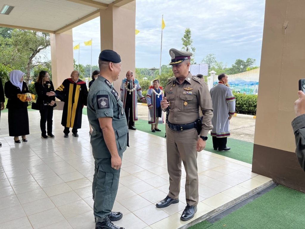 เมื่อวันที่ 9 มิ.ย. 2566 เวลา 09.00 น. พ.ต.อ.อัครวุฒ ธานีรัตน์ รอง ผบก.ภ.จว.สงขลา/รอง ผบ.ศปก.ภ.จว.สงขลา สน.(มค.2) , พ.ต.อ.ธรรมรัตน์ เพชรหนองชุม ผกก.สภ.เทพา ตรวจสอบความพร้อมเจ้าหน้าที่รักษาความปลอดภัย และร่วมต้อนรับ พล.อ.เฉลิมชัย สิทธิสาท องคมนตรี และคณะ เดินทางมาเป็นประธานในพิธีประสาทอนุปริญญาบัตรแก่ผู้สำเร็จการศึกษา ณ วิทยาลัยชุมชนสงขลา ต.เทพา อ.เทพา จว.สงขลา