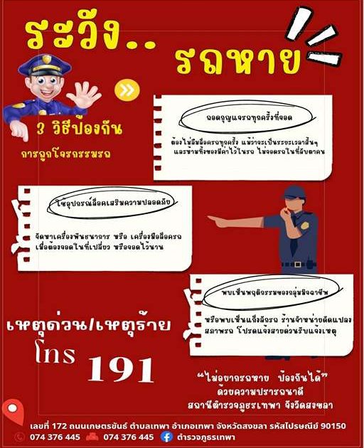 ขอความร่วมมือจากพี่น้องประชาชนอำเภอเทพา ร่วมป้องกันรถหาย