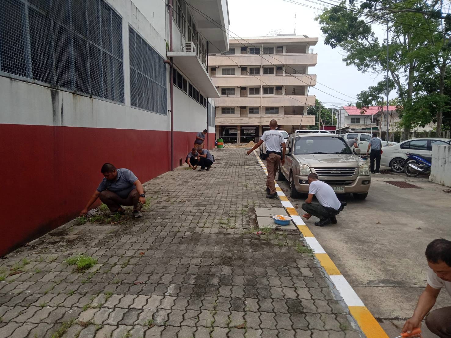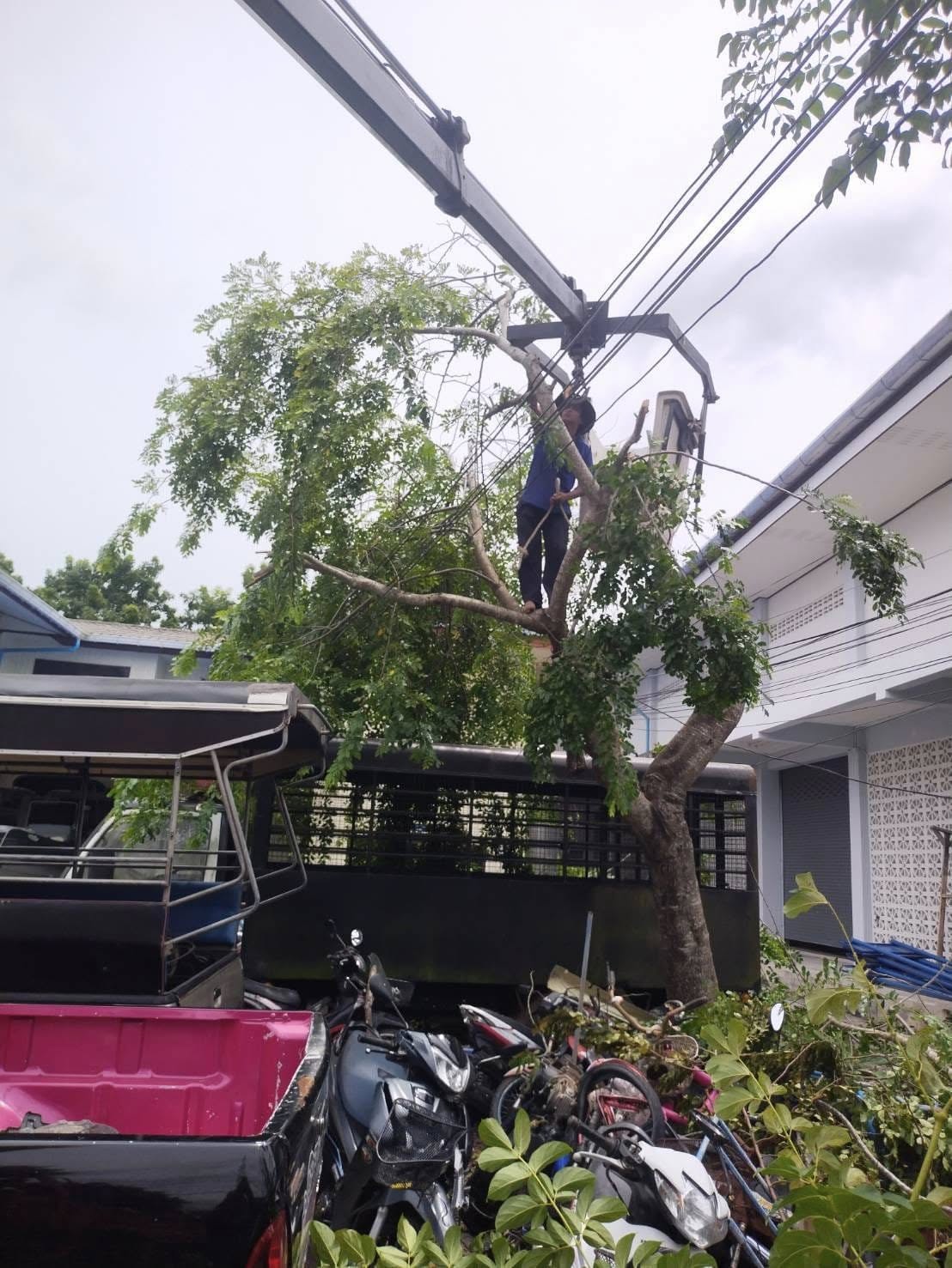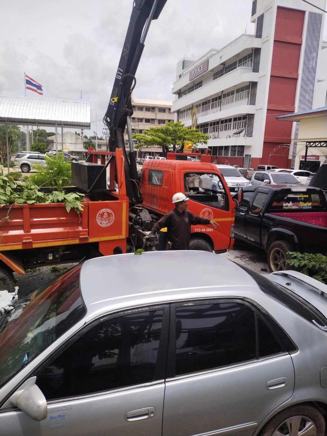 #ขอขอบคุณ เทศบาล ต.เทพา ที่ให้การสนับสนุน โดยพนักงานประจำรถกระเช้าดำเนินการตัดแต่งต้นไม้ เพื่อปรับปรุงภูมิทัศน์