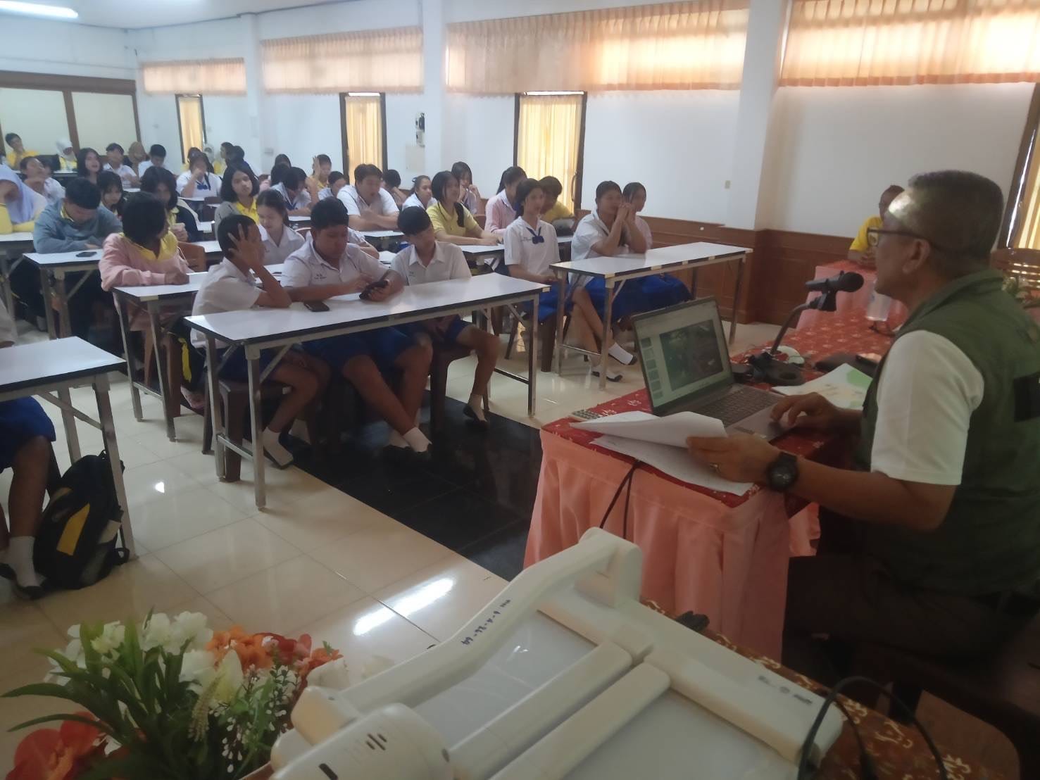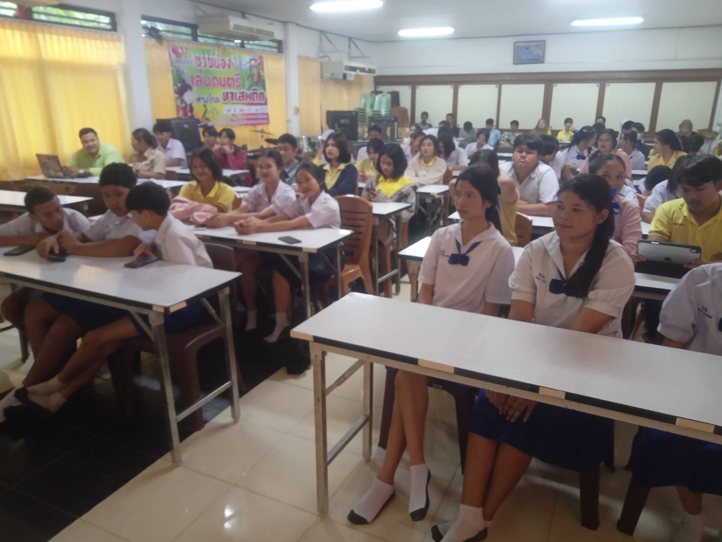 ร่วมเป็นวิทยากรบรรยายให้ความรู้เกี่ยวกับ กฎหมาย โทษ และพิษภัยของยาเสพติด สร้างภูมิคุ้มกันและการป้องกันการแพร่ระบาดของยาเสพติดในสถานศึกษา ตามโครงการ ชวนน้องเล่นดนตรี ห่างไกลยาเสพติด