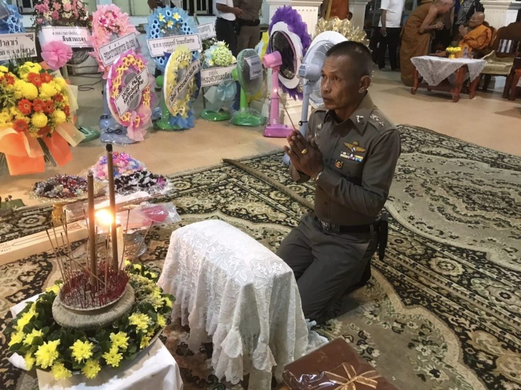 เมื่อวันที่ 11 ม.ค. 2567 เวลา 18.30 น. พ.ต.อ.ธรรมรัตน์ เพชรหนองชุม ผกก.สภ.เทพา , พ.ต.ท.พิสิทธิ์ โรจชะยะ สวป.สภ.เทพา , พ.ต.ต.หญิง รัตณา มะหันตะกิจ สว.อก.สภ.เทพา , ร.ต.อ.ศุภชัย วิรุฬห์รัตกุล รอง สว.(ป.)สภ.เทพา อนุศาสนาจารย์ ร่วมวางพวงหรีดเคารพศพ คุณพ่อสังเวียน หลัดเกลี้ยง