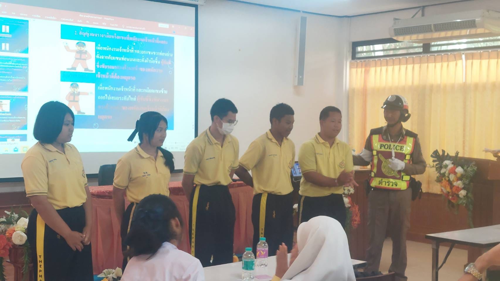 ร.ต.อ.สัมพันธ์ กาลรัตน์ รอง สวป.สภ.เทพา พร้อมด้วยเจ้าหน้าที่ กำลังสายตรวจจราจร