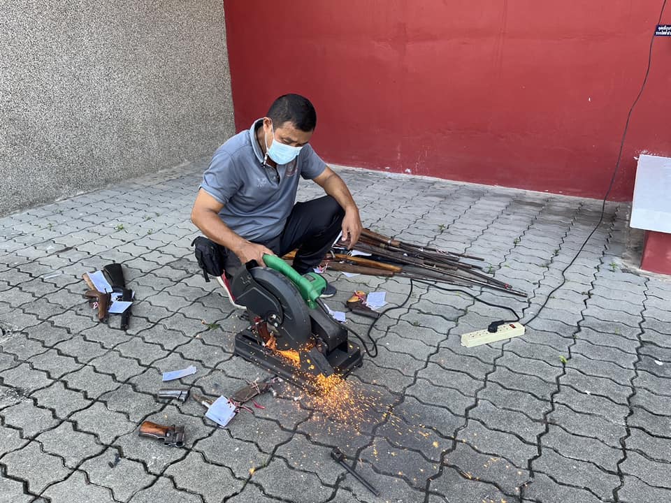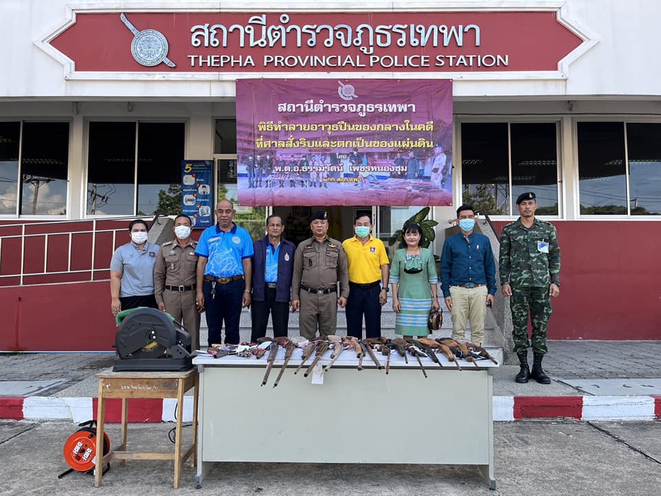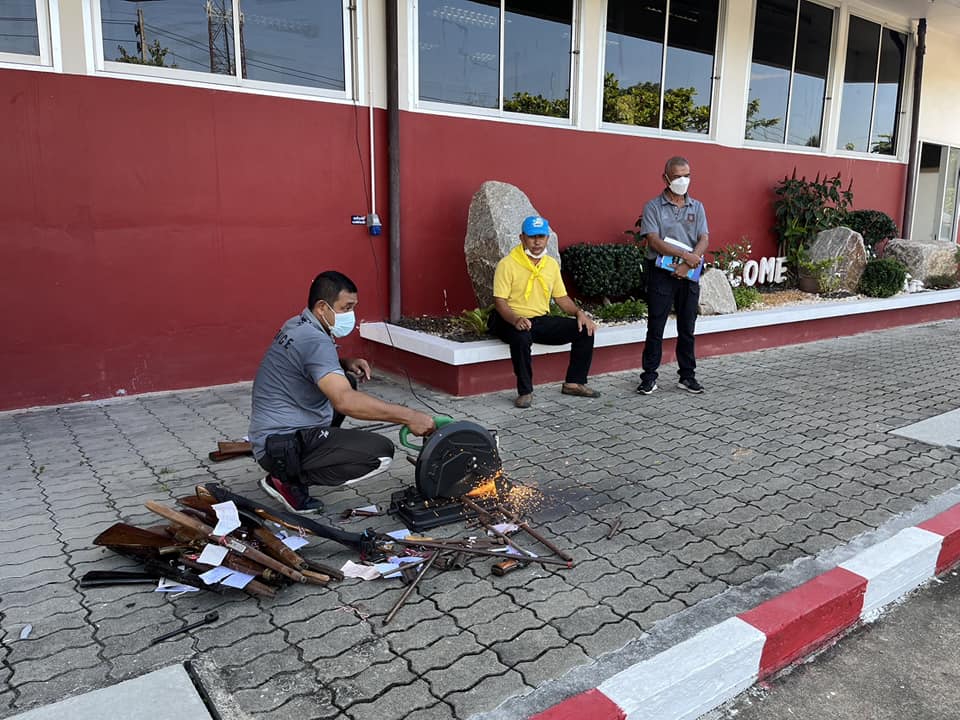 เมื่อวันที่ 5 ก.ค. 2566 เวลา 09.00 น. พ.ต.อ.ธรรมรัตน์ เพชรหนองชุม ผกก.สภ.เทพา พร้อมด้วยคณะกรรมการทำลายอาวุธปืนของกลางที่ศาลสั่งริบเด็ดขาด โดยมีผู้แทนจากหน่วยงานราชการ และ กต.ตร.สภ.เทพา ร่วมเป็นพยานเพื่อทำลายอาวุธปืนของกลาง ตามคำสั่ง ภ.จว.สงขลา ที่ 574/2566 ลง 14 มิ.ย. 2566 ตามขั้นตอน ทำลาย ตัด ทุบ เผา ฝัง ณ หน้าอาคารที่ทำการ สภ.เทพา