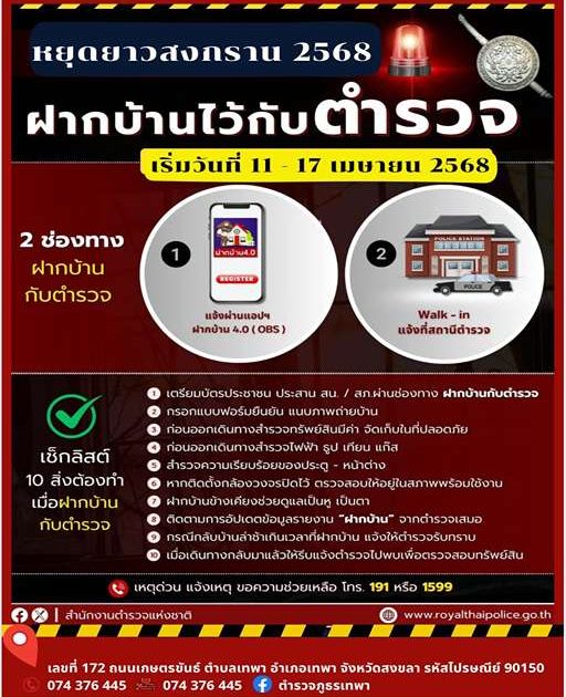 สงกรานต์นี้หยุดยาว ฝากบ้านไว้ให้ตำรวจช่วยดูแล