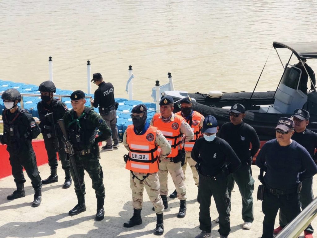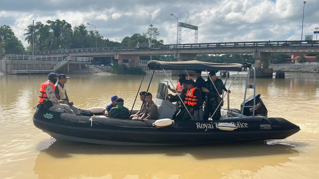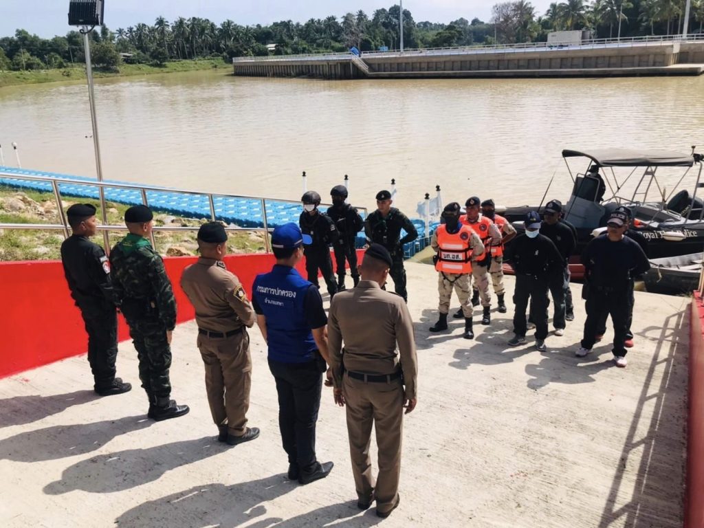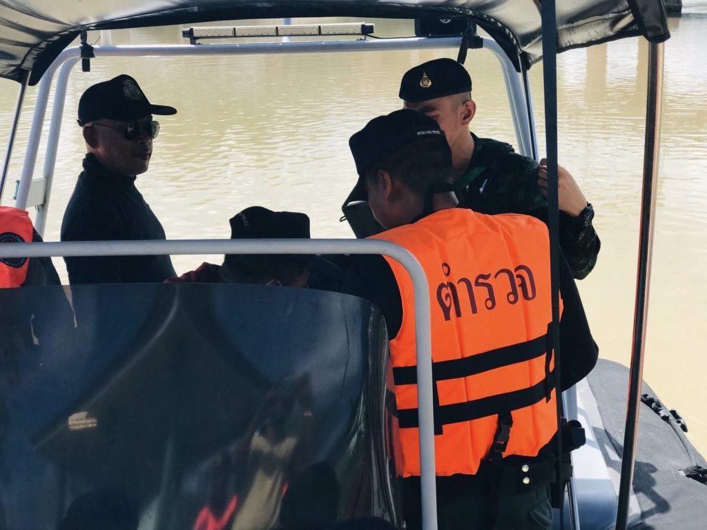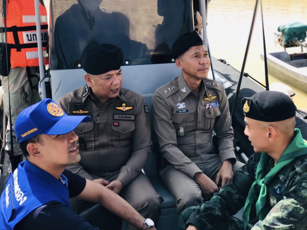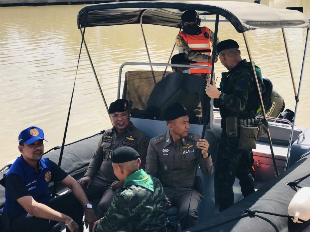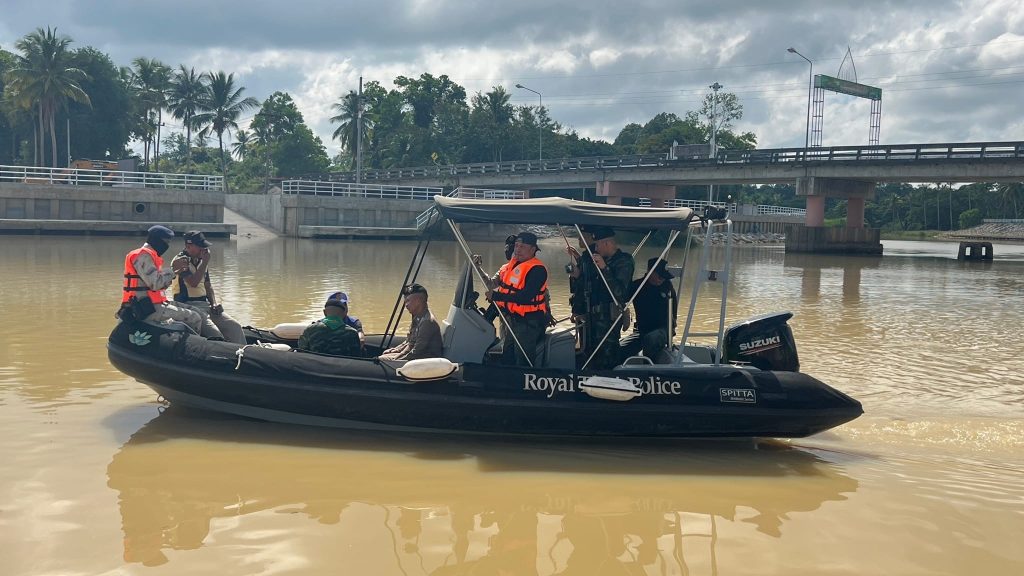 สนธิกำลังปฏิบัติการทางน้ำ 19 กันยายน 2566 โดย thepha / ข่าวประชาสัมพันธ์,ข่าวกิจกรรม เมื่อวันที่ 19 ก.ย. 2566 เวลา 09.30 น. พ.ต.อ.ธรรมรัตน์ เพชรหนองชุม ผกก.สภ.เทพา , พ.ต.ท.สุรเดช เส็นยีหีม รอง ผกก.ป.สภ.เทพา , พ.ต.ท.นิติ ทองชูช่วย สวป.สภ.เทพา พร้อมชุดปฏิบัติการสายตรวจ และกำลังบูรณาการหน่วยงานความมั่นคง 3 ฝ่าย ตำรวจ ทหาร และฝ่ายปกครอง ร่วมสนธิกำลังปฏิบัติการรักษาความปลอดภัยตามลำน้ำด้วยเรือตรวจการณ์ บริเวณแม่น้ำเทพา #ปฏิบัติการทางน้ำ_ตามมาตรการควบคุมพื้นที่