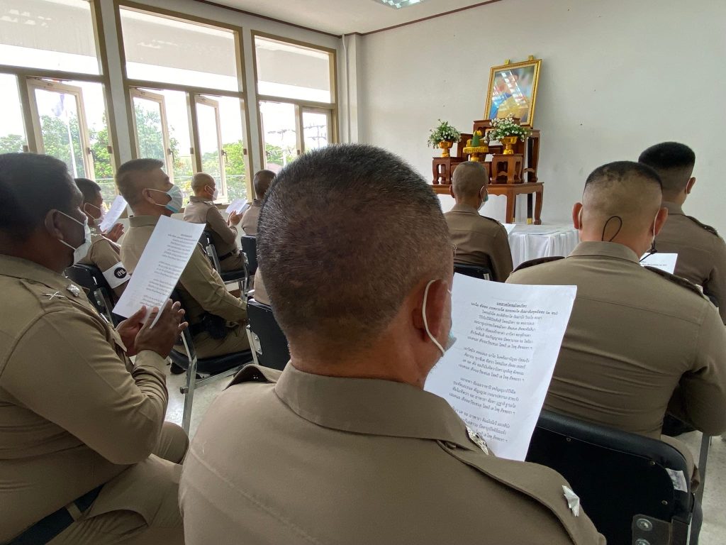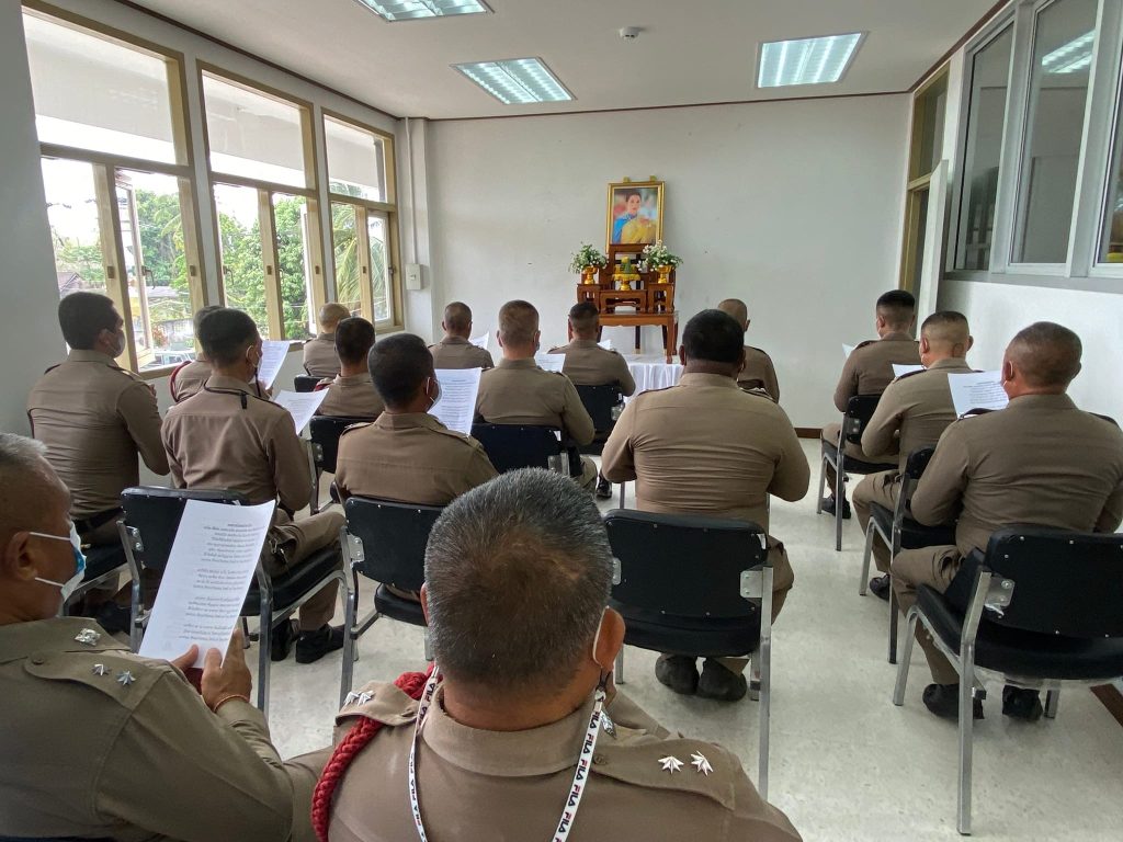 เมื่อวันที่ 27 ส.ค. 2566 เวลา 17.00 น. พ.ต.อ.ธรรมรัตน์ เพชรหนองชุม ผกก.สภ.เทพา ประธานในพิธี พร้อมด้วยข้าราชการตำรวจในสังกัด ร่วมสวดพระพุทธมนต์ เจริญจิตภาวนา (บทสวดโพชฌังคปริตร) ตั้งจิตอธิษฐาน เพื่อถวายพระพรชัยมงคลแด่ สมเด็จพระเจ้าลูกเธอ เจ้าฟ้าพัชรกิติยาภา นเรนทิราเทพยวดี กรมหลวงราชสาริณีสิริพัชร มหาวัชรราชธิดา ขอให้พระองค์ทรงหายจากพระอาการประชวรและมีพระพลานามัยแข็งแรงสมบูรณ์ในเร็ววัน ณ อาคารที่ทำการสถานีตำรวจ