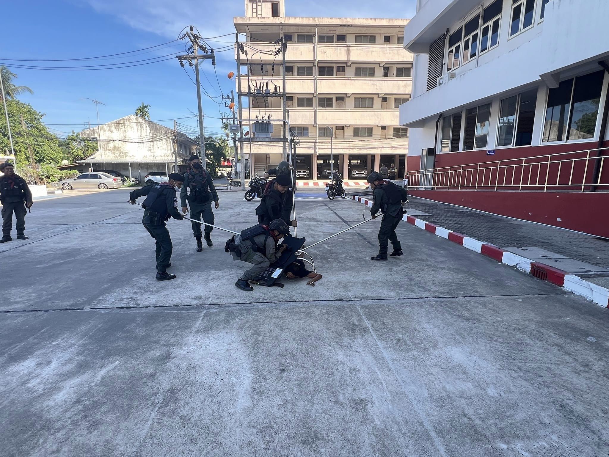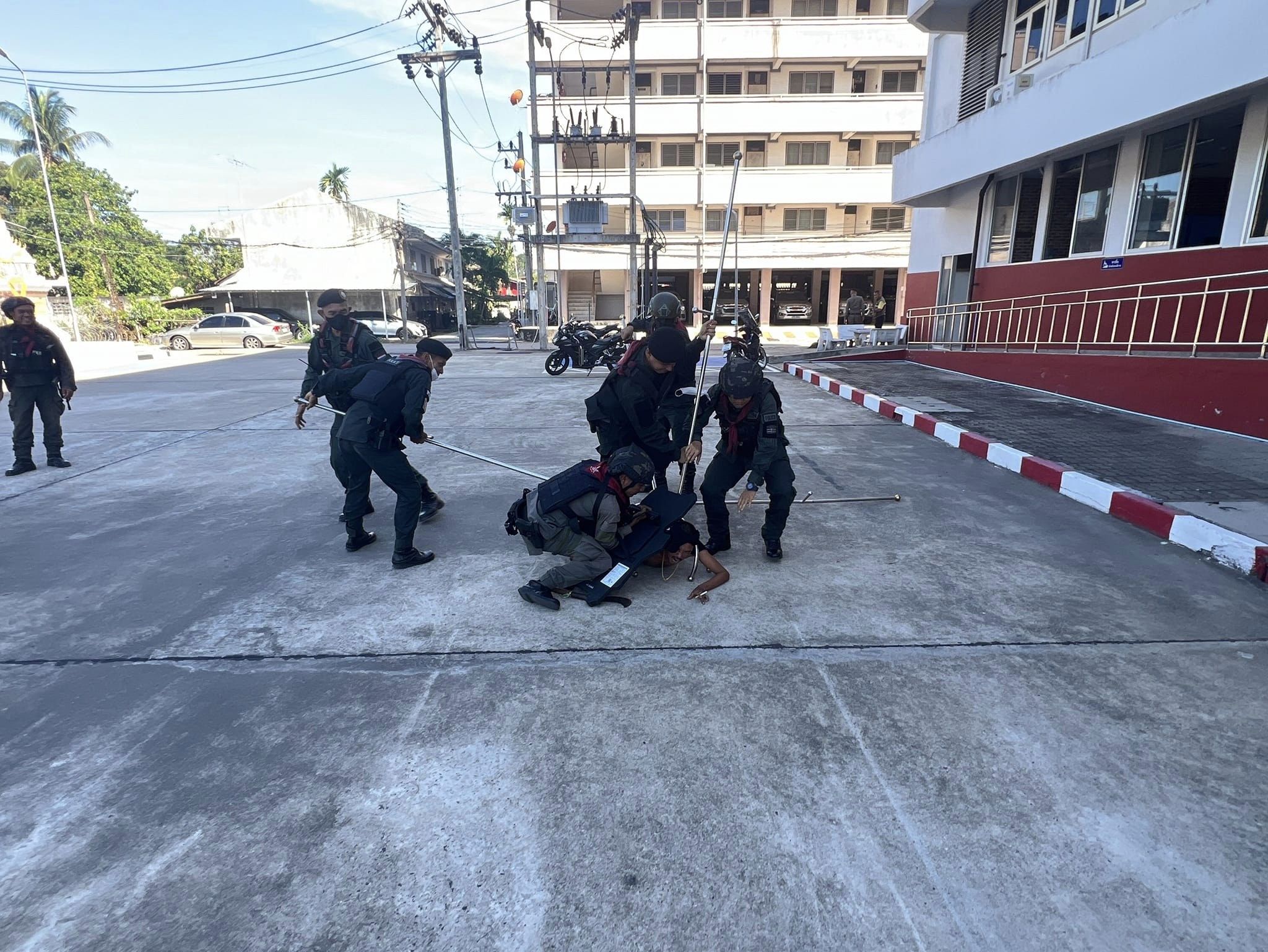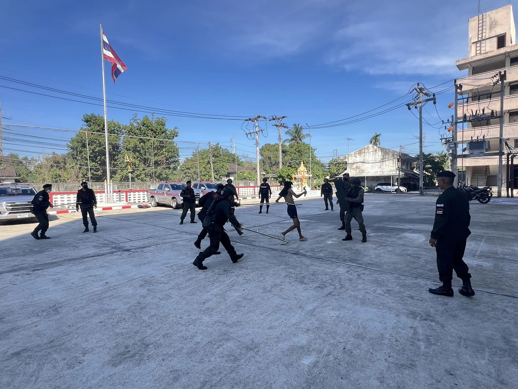 ร.ต.อ.พชรพล หัสมาน รอง สวป.สภ.เทพา และกำลังข้าราชการตำรวจ ร่วมฝึกทบทวนการปฏิบัติการใช้ชุดไม้ง่ามเข้าควบคุมตัว ระงับเหตุบุคคลคลุ้มคลั่ง เพื่อลดการสูญเสีย บาดเจ็บ ทั้งตำรวจและตัวผู้ก่อเหตุ โดยอุปกรณ์ไม้ง่าม และกุญแจมือ