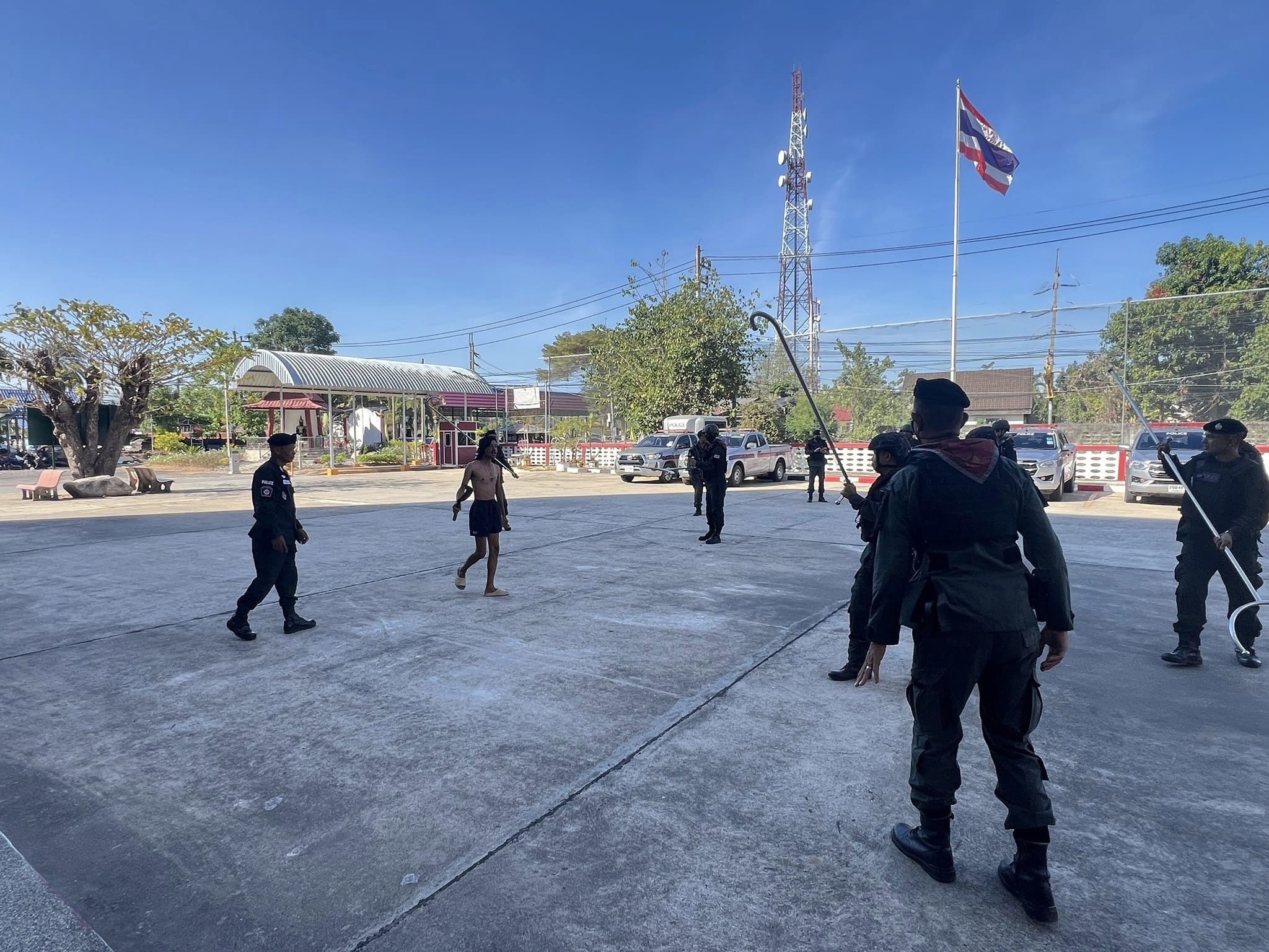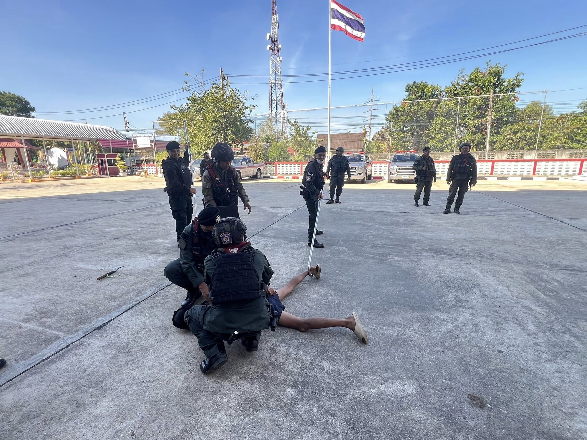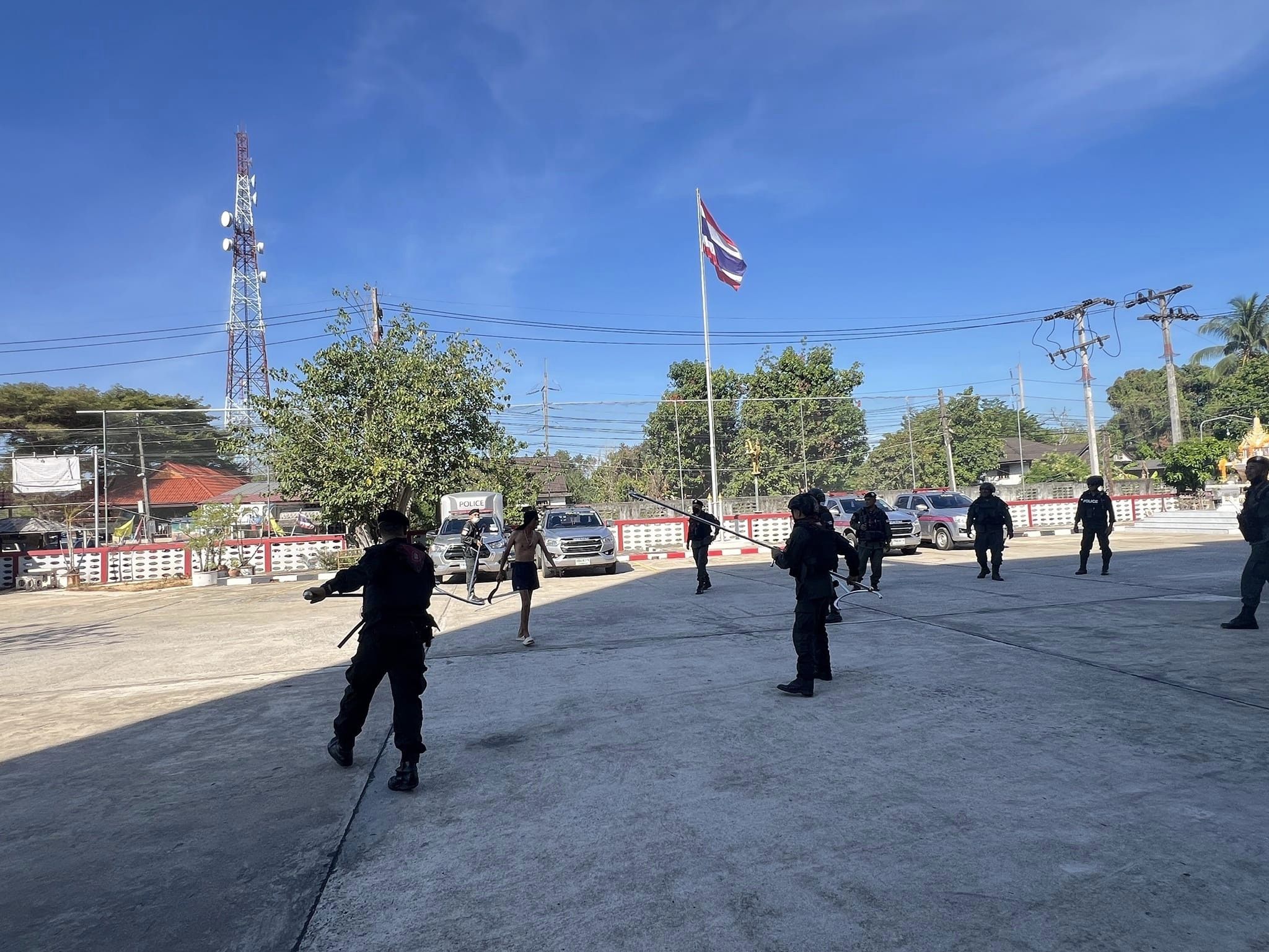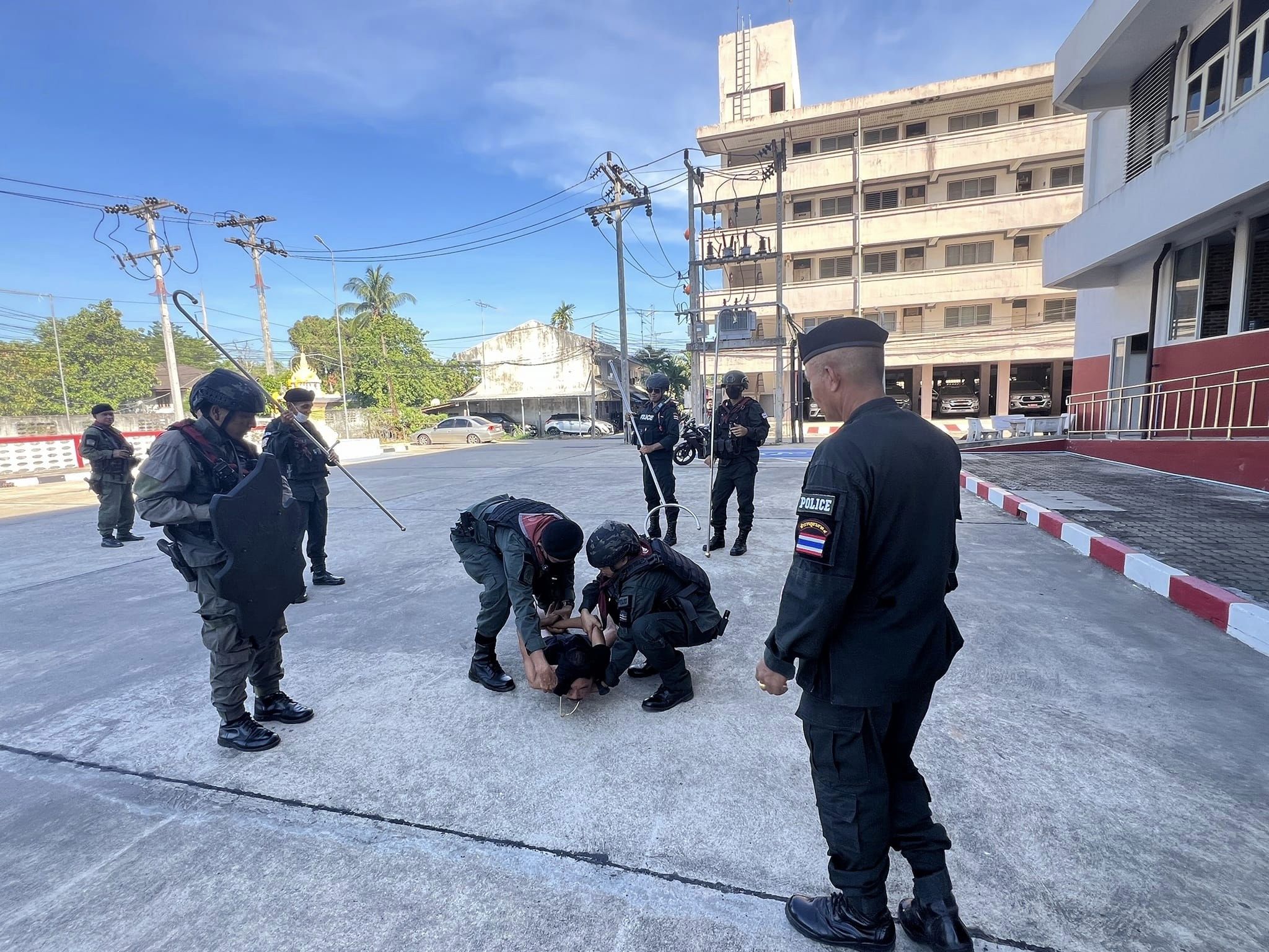 ร.ต.อ.พชรพล หัสมาน รอง สวป.สภ.เทพา และกำลังข้าราชการตำรวจ ร่วมฝึกทบทวนการปฏิบัติการใช้ชุดไม้ง่ามเข้าควบคุมตัว ระงับเหตุบุคคลคลุ้มคลั่ง เพื่อลดการสูญเสีย บาดเจ็บ ทั้งตำรวจและตัวผู้ก่อเหตุ โดยอุปกรณ์ไม้ง่าม และกุญแจมือ