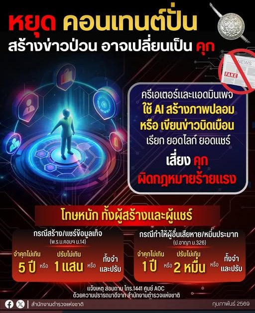 มีสิทธิติดคุก ทั้งผู้สร้างคอนเทนต์และผู้แชร์