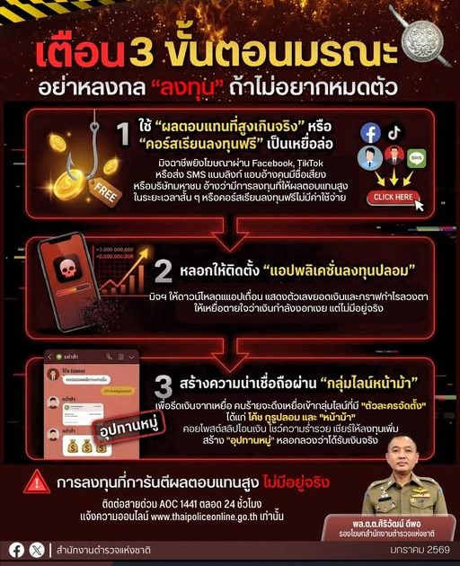 3 ขั้นตอนตกเหยื่อ “ชวนลงทุนออนไลน์” สุดท้ายแค่หลอกโอนเงิน
