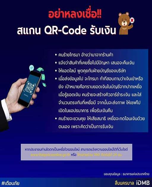 อย่าหลงเชื่อ!! สแกน QR Code รับเงิน