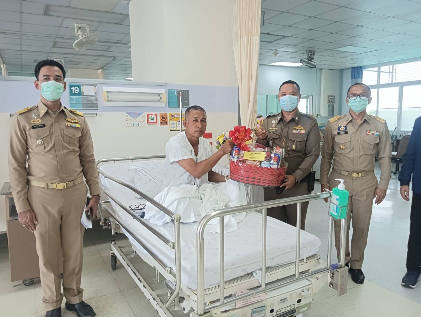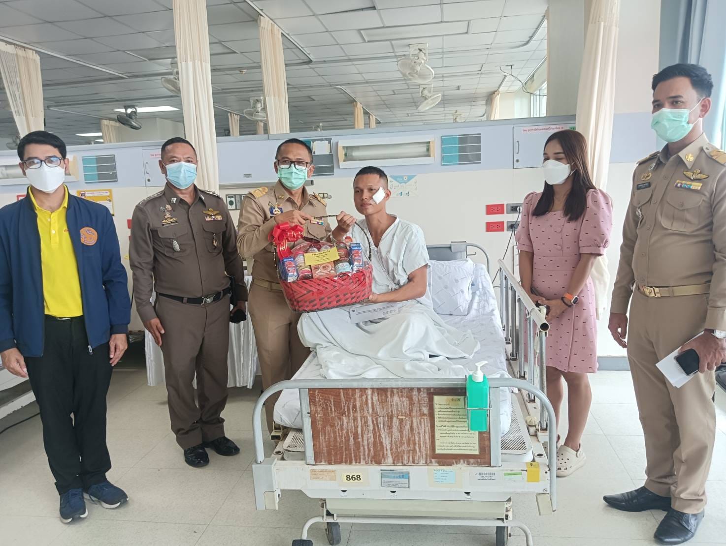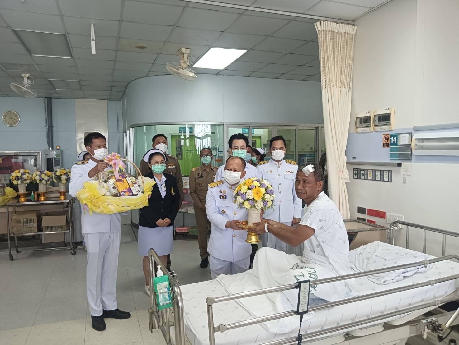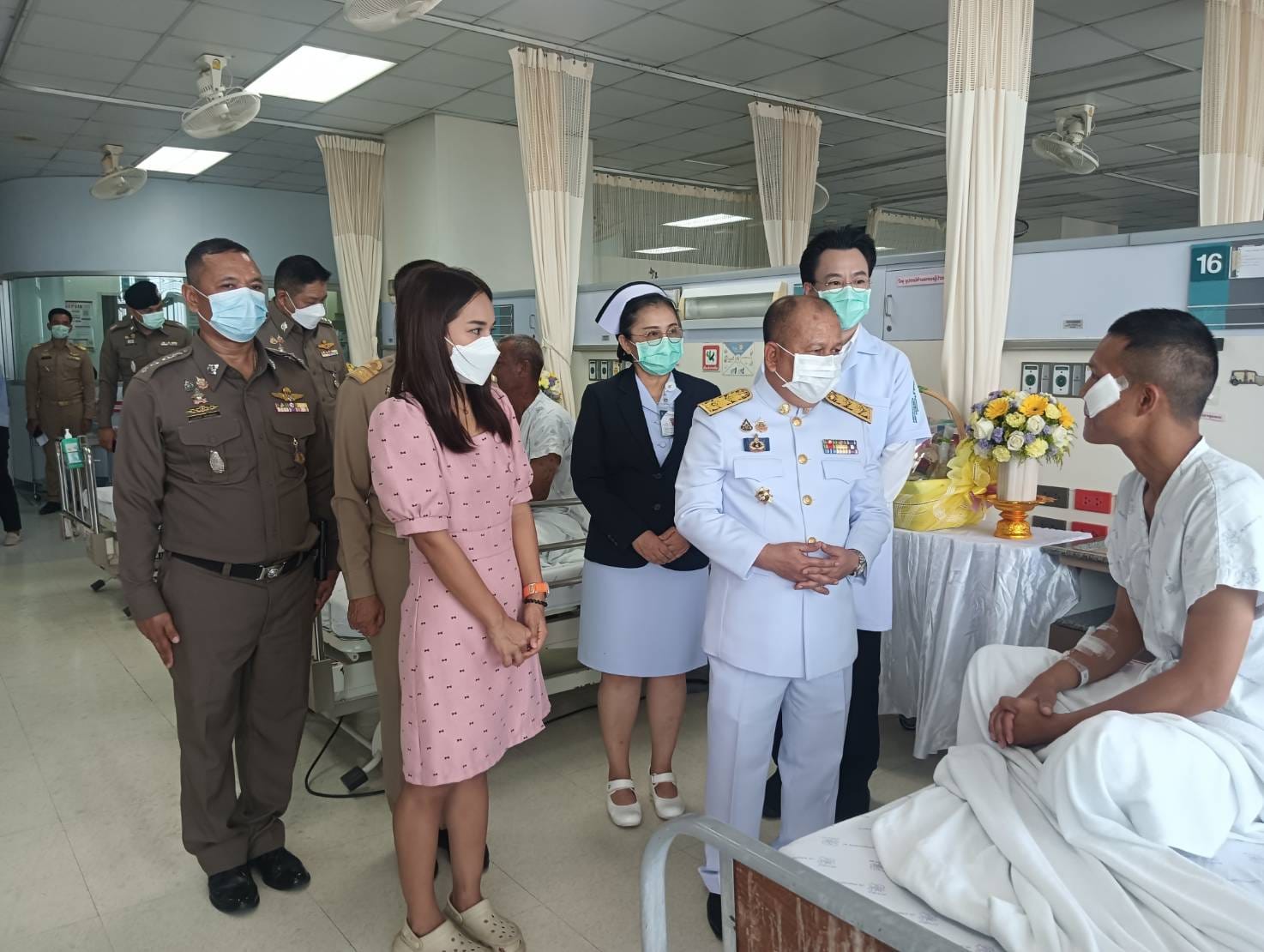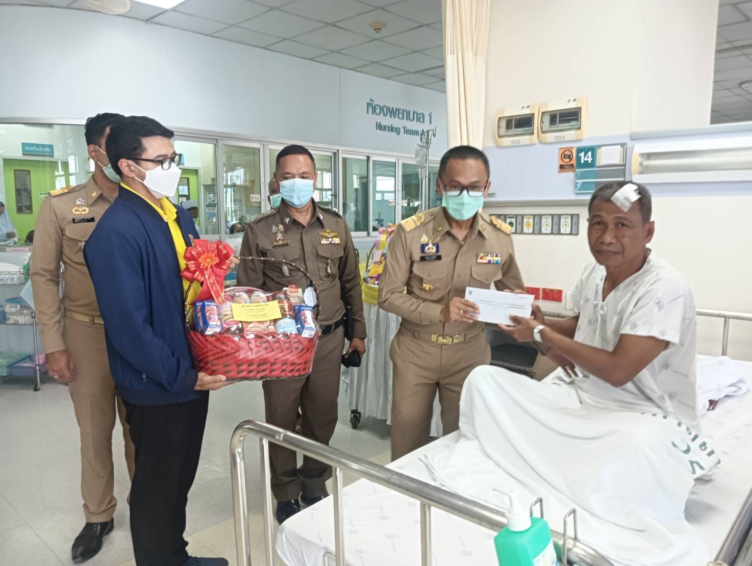 เชิญดอกไม้และตะกร้าสิ่งของพระราชทานไปมอบแก่เจ้าหน้าที่ตำรวจชุดปฏิบัติการเคลื่อนที่เร็ว สภ.เทพา ที่ได้รับบาดเจ็บจากคนร้ายลอบวางระเบิด ขณะปฎิบัติหน้าที่ ออกลาดตระเวนตรวจตราพื้นที่รับผิดชอบ จนกระทั่งมาถึงบริเวณริมถนนก่อนถึงโรงไฟฟ้าชีวมวลเทพา บ้านท่าดี หมู่ 4 ต.เทพา อ.เทพา จว.สงขลา คนร้ายได้จุดชนวนระเบิดขึ้น แรงระเบิดทำให้รถยนต์ได้รับความเสียหาย และเจ้าหน้าที่ได้รับบาดเจ็บ จำนวน 4 ราย เมื่อวันอังคารที่ 23 ก.ค. 2567 ที่ผ่านมา