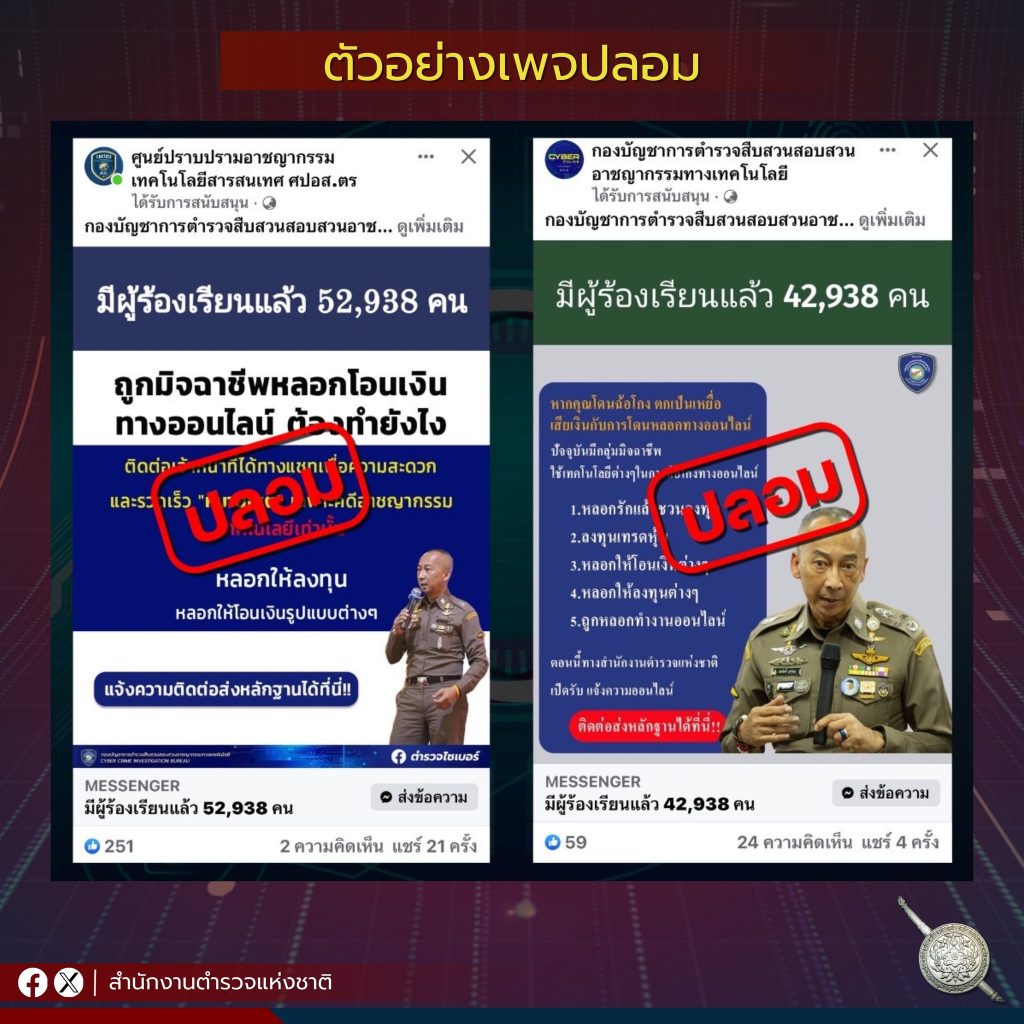 • คนร้ายปลอมเพจเฟซบุ๊กตำรวจแอบอ้างรับแจ้งความ