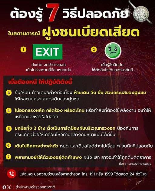 และหากต้องการความช่วยเหลือ สามารถโทรแจ้งเจ้าหน้าที่ตำรวจได้ตลอด 24 ชั่วโมง ที่สายด่วน 191 หรือ 1599