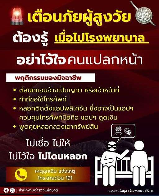เมื่อท่านไปในที่สาธารณะ เช่น โรงพยาบาล หน่วยงานราชการต่าง ๆ ที่มีผู้คนไปใช้บริการจำนวนมาก แม้เป็นสถานที่ปลอดภัย แต่ก็อาจมีมิจฉาชีพแฝงตัวมา