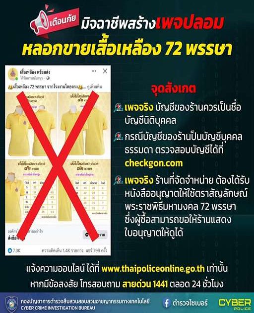 เพจปลอมหลอกขายเสื้อเหลืองระบาดหนัก