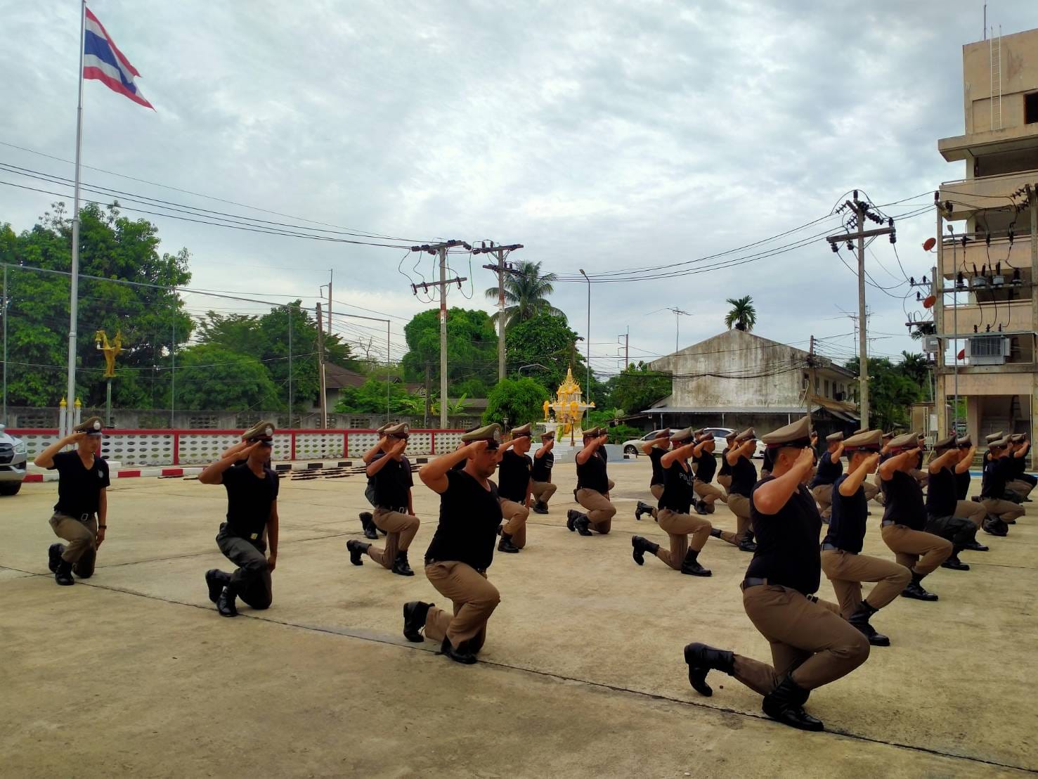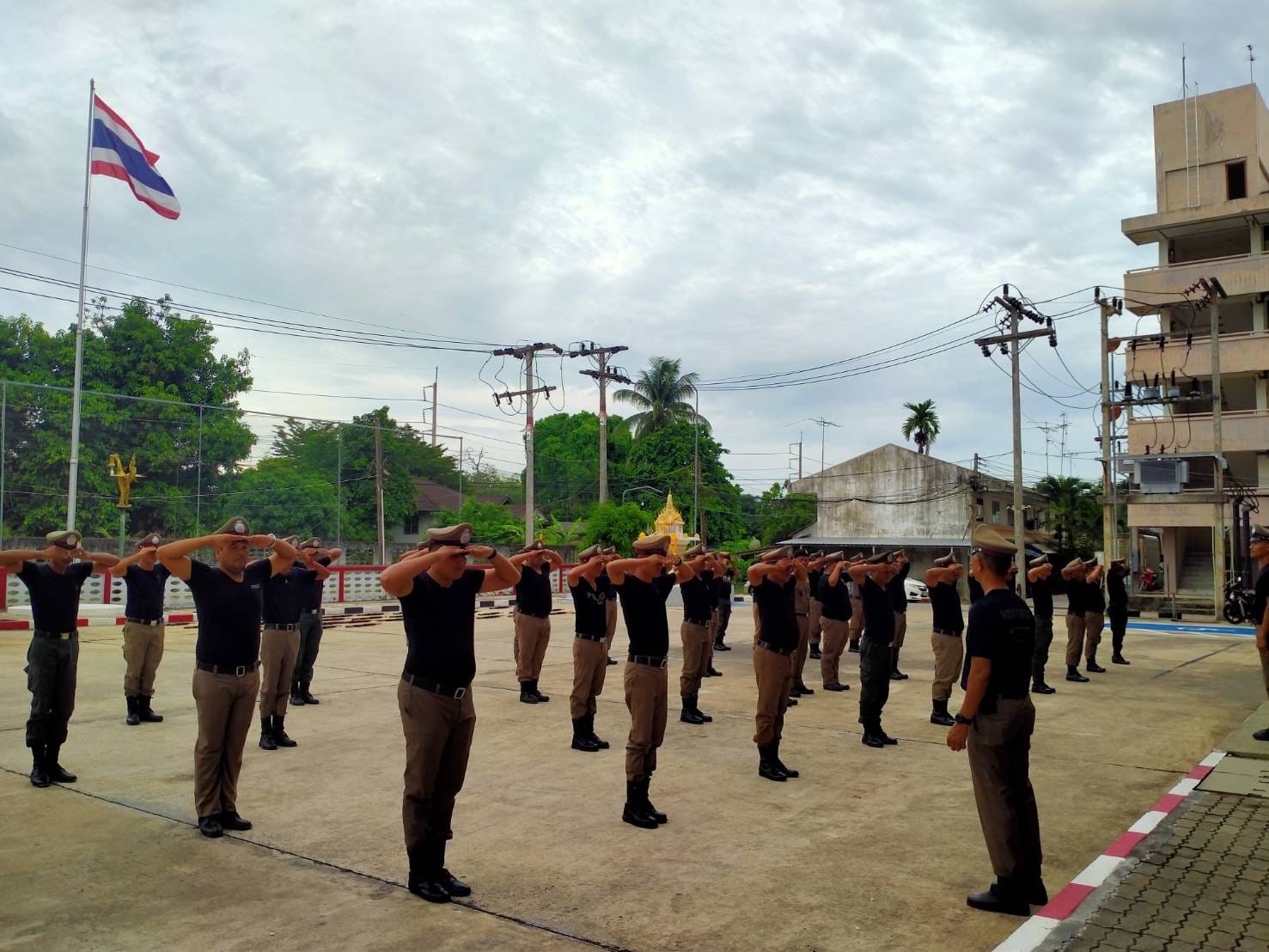 ร่วมลงแถวกล่าวคำปฏิญาณตนและอุดมคติตำรวจ ประชุมชี้แจงข้าราชการตำรวจ
