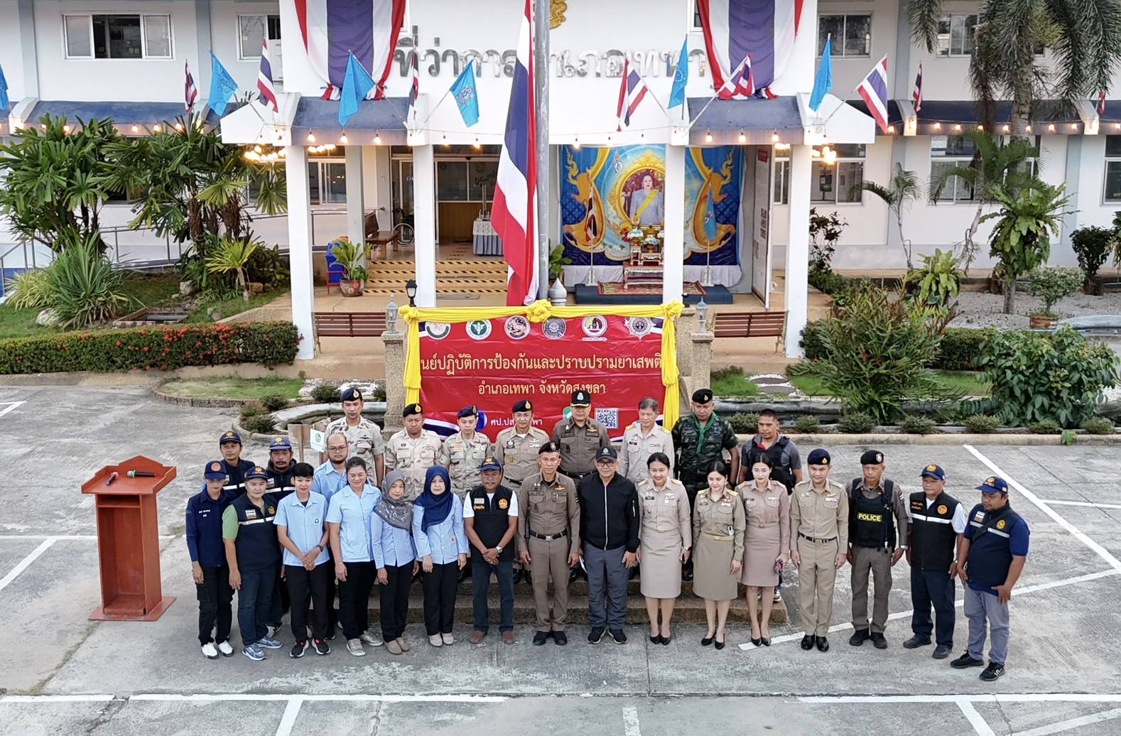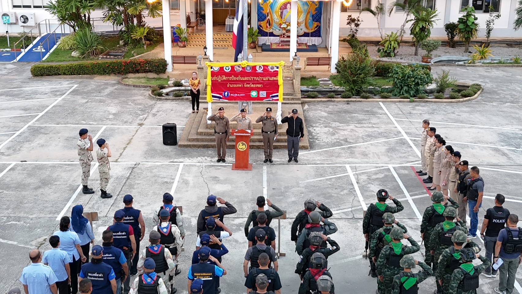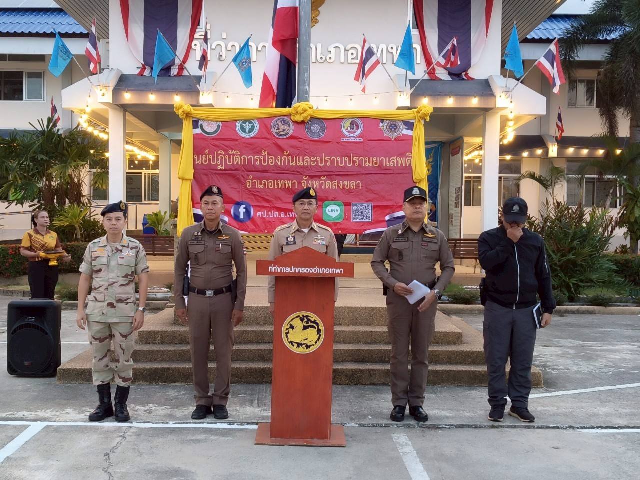 ร่วมสนธิกำลังบูรณาการหน่วยงาน 3 ฝ่าย ตำรวจ ทหาร และฝ่ายปกครอง โดย ศป.ปส.อ.เทพา ประชุมชี้แจงภารกิจ ปล่อยแถวปฏิบัติการปิดล้อม ตรวจค้น จับกุม และกวาดล้างยาเสพติด ตามแผนปฏิบัติการกวาดล้างยาเสพติด ” No Drugs No Dealers ” ประจำปีงบประมาณ พ.ศ. 2568