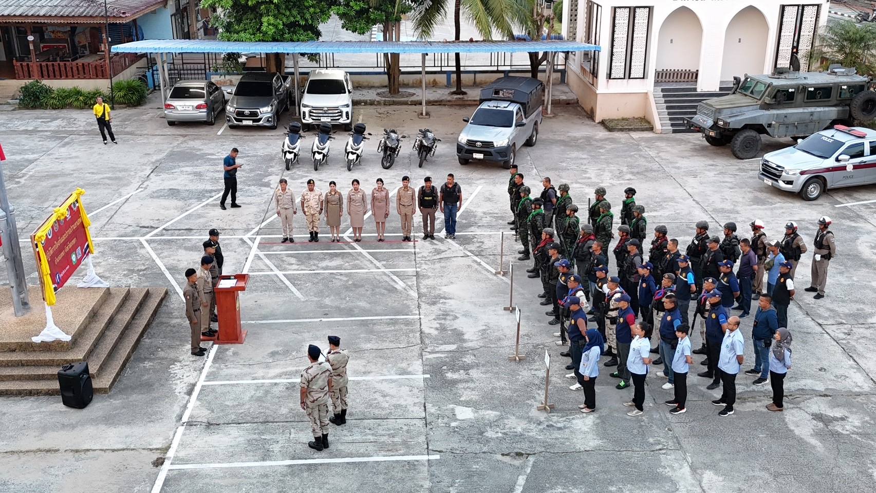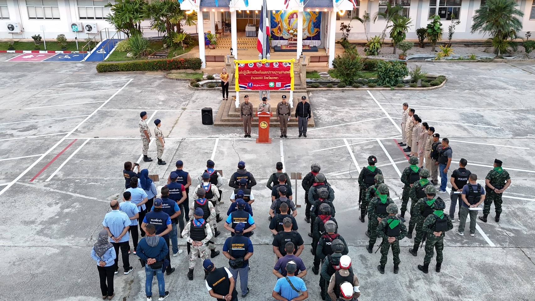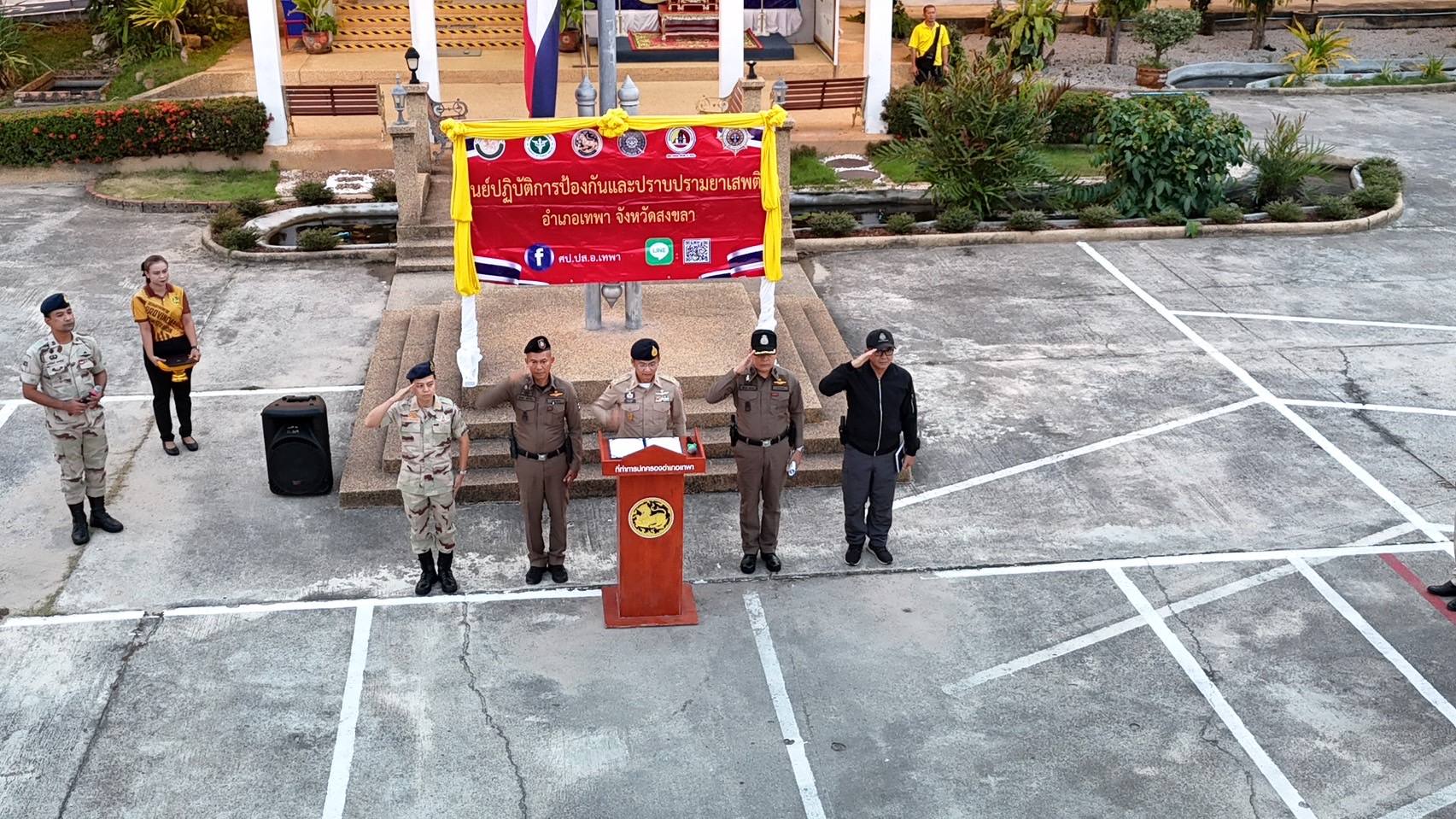 ร่วมสนธิกำลังบูรณาการหน่วยงาน 3 ฝ่าย ตำรวจ ทหาร และฝ่ายปกครอง โดย ศป.ปส.อ.เทพา ประชุมชี้แจงภารกิจ ปล่อยแถวปฏิบัติการปิดล้อม ตรวจค้น จับกุม และกวาดล้างยาเสพติด ตามแผนปฏิบัติการกวาดล้างยาเสพติด ” No Drugs No Dealers ” ประจำปีงบประมาณ พ.ศ. 2568