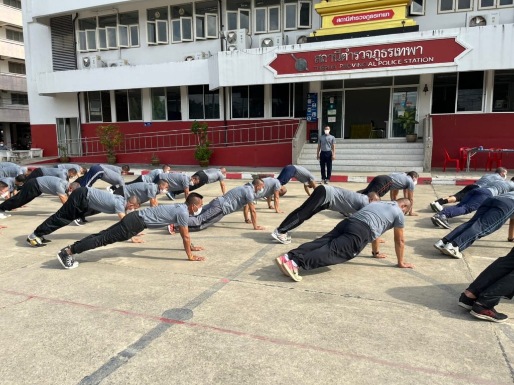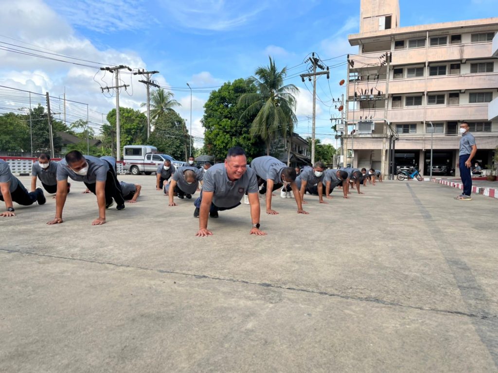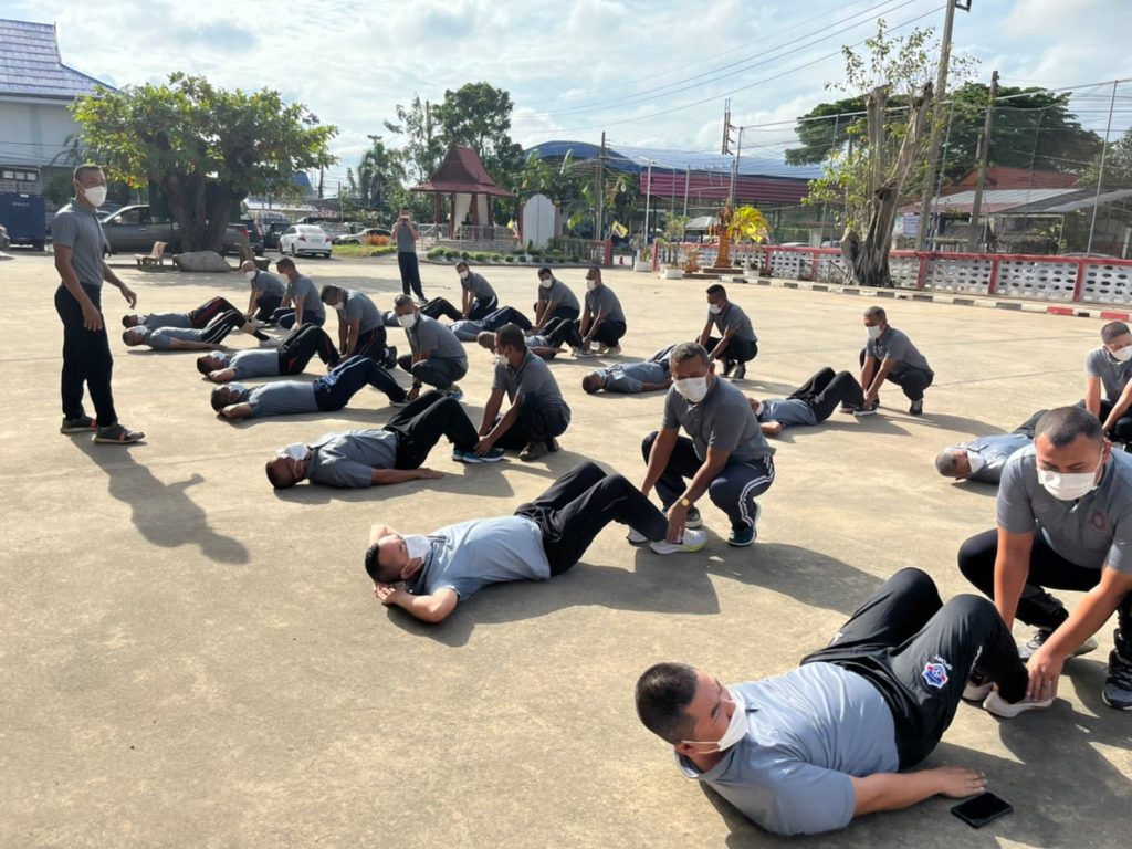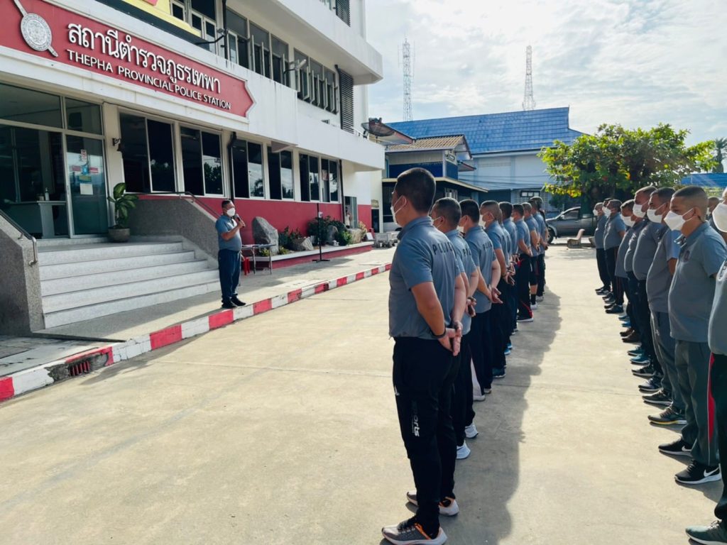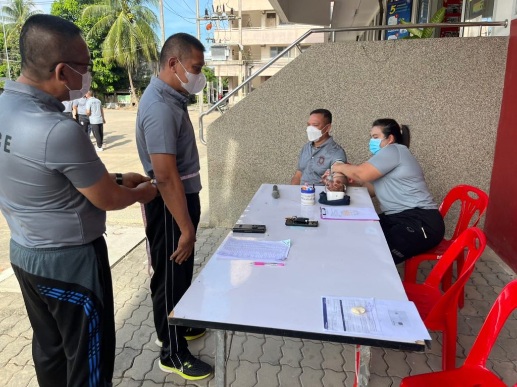 เมื่อวันที่ 3 ม.ค. 2566 เวลา 08.30 น. พ.ต.อ.ธรรมรัตน์ เพชรหนองชุม ผกก.สภ.เทพา พร้อมด้วย พ.ต.ท.วรรณพงษ์ วงษ์สุวรรณ รอง ผกก.สส.สภ.เทพา , พ.ต.ท.นิติ ทองชูช่วย สวป.สภ.เทพา , พ.ต.ท.พิสิทธิ์ โรจชะยะ สวป.สภ.เทพา , พ.ต.ต.บุญธรรม มากมณี สว.สส.สภ.เทพา , พ.ต.ต.หญิง รัตณา มะหันตะกิจ สว.อก.สภ.เทพา นำกำลังข้าราชการตำรวจ ตรวจวัดอุณหภูมิร่างกาย ตรวจวัดความดันโลหิต จากเจ้าหน้าที่ อาสาสมัครสาธารณสุขประจำหมู่บ้าน (อสม.) ก่อนร่วมทำการทดสอบสมรรถภาพร่างกายข้าราชการตำรวจ ตามนโยบายบริหารราชการของสำนักงานตำรวจแห่งชาติ ครั้งที่ 4 ประจำปี 2565 ณ ลานหน้าอาคารสถานีตำรวจ