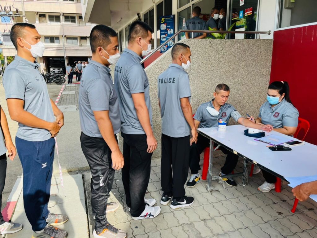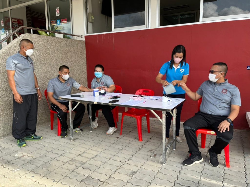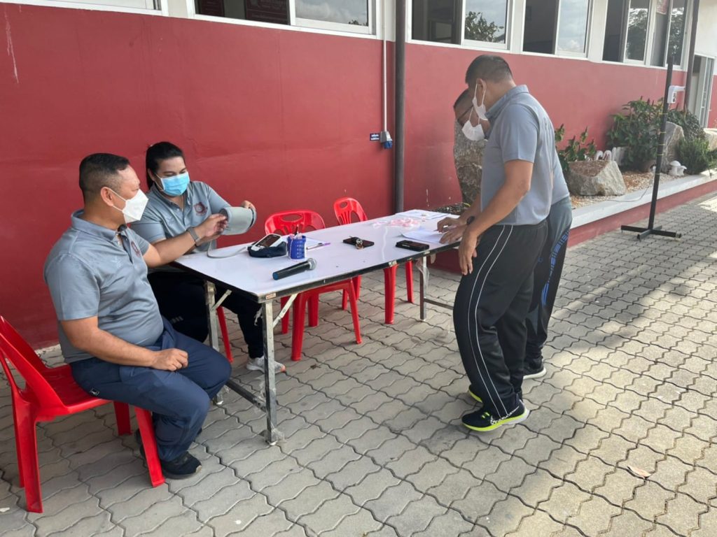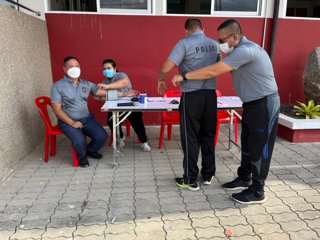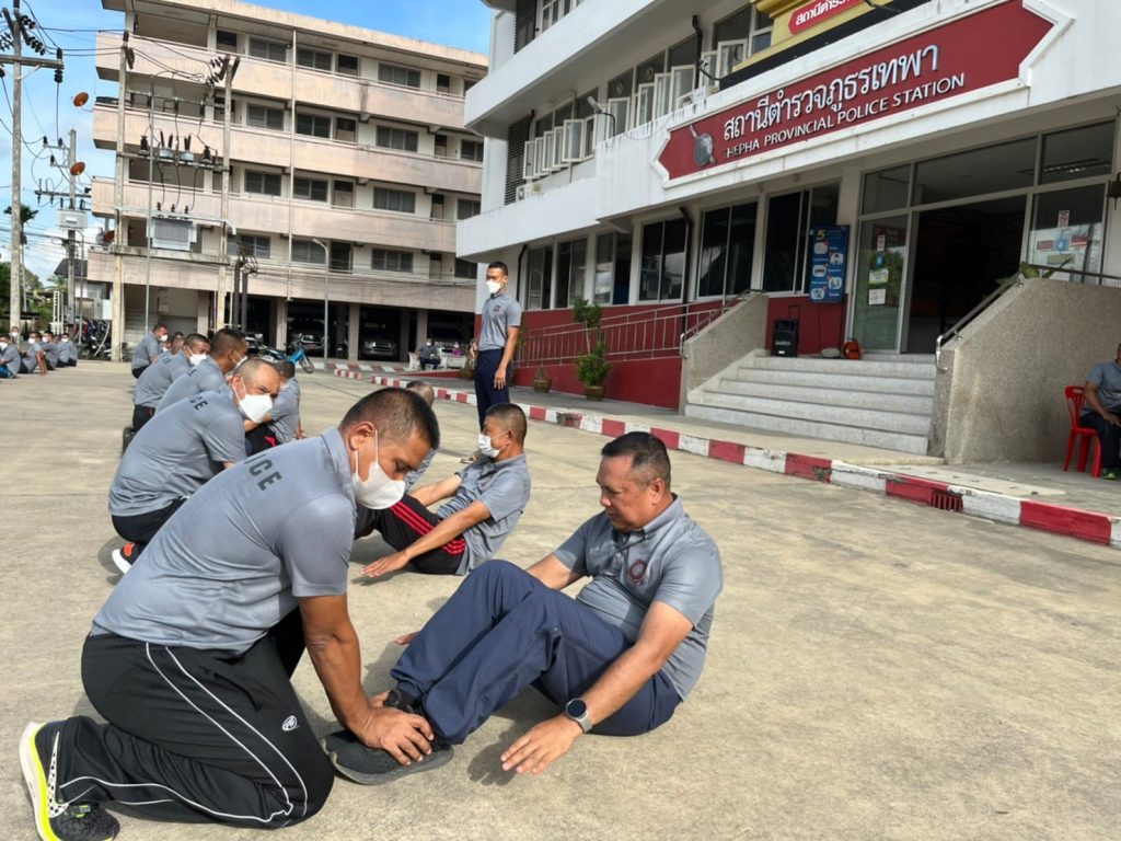 เมื่อวันที่ 3 ม.ค. 2566 เวลา 08.30 น. พ.ต.อ.ธรรมรัตน์ เพชรหนองชุม ผกก.สภ.เทพา พร้อมด้วย พ.ต.ท.วรรณพงษ์ วงษ์สุวรรณ รอง ผกก.สส.สภ.เทพา , พ.ต.ท.นิติ ทองชูช่วย สวป.สภ.เทพา , พ.ต.ท.พิสิทธิ์ โรจชะยะ สวป.สภ.เทพา , พ.ต.ต.บุญธรรม มากมณี สว.สส.สภ.เทพา , พ.ต.ต.หญิง รัตณา มะหันตะกิจ สว.อก.สภ.เทพา นำกำลังข้าราชการตำรวจ ตรวจวัดอุณหภูมิร่างกาย ตรวจวัดความดันโลหิต จากเจ้าหน้าที่ อาสาสมัครสาธารณสุขประจำหมู่บ้าน (อสม.) ก่อนร่วมทำการทดสอบสมรรถภาพร่างกายข้าราชการตำรวจ ตามนโยบายบริหารราชการของสำนักงานตำรวจแห่งชาติ ครั้งที่ 4 ประจำปี 2565 ณ ลานหน้าอาคารสถานีตำรวจ
