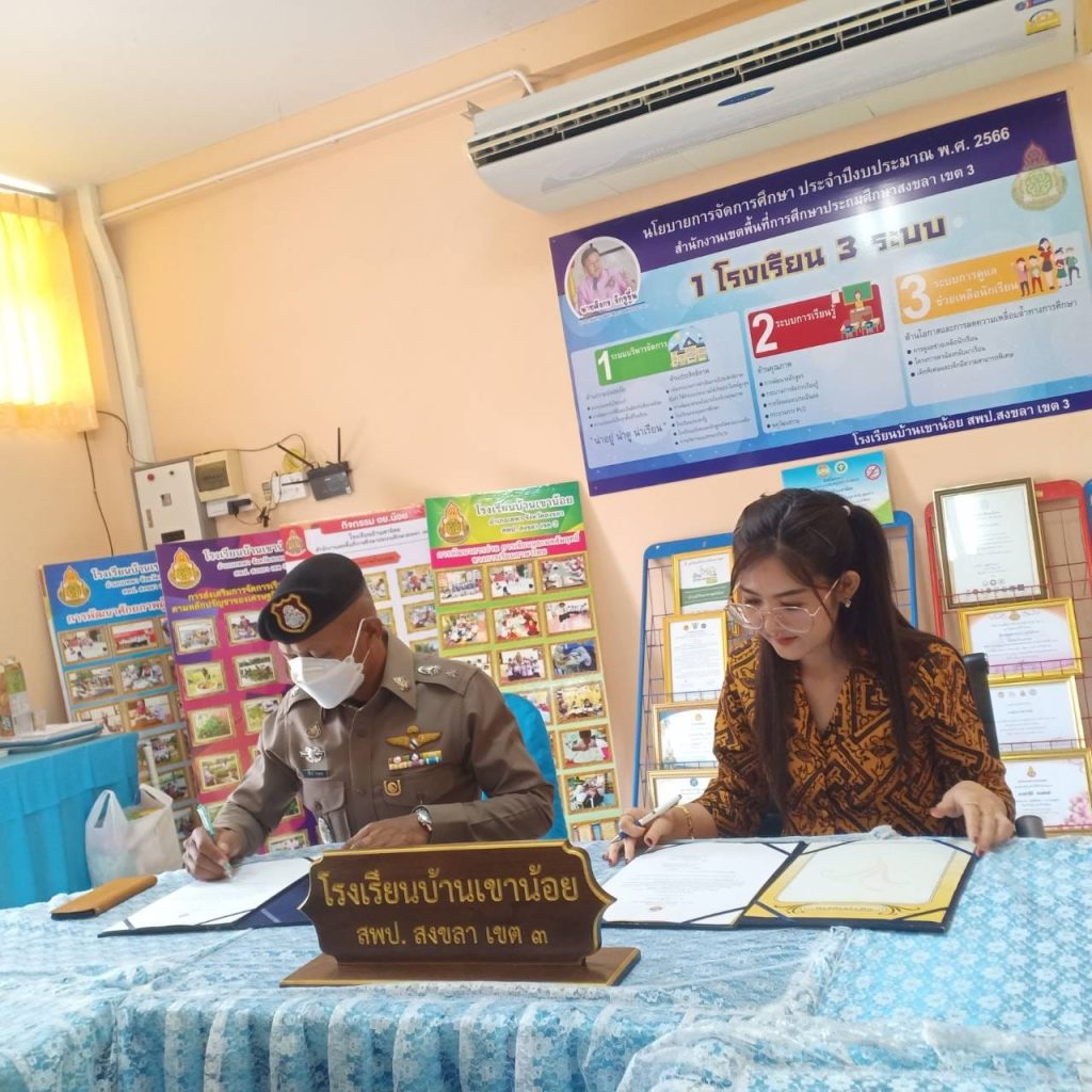พบปะพูดคุยกับ น.ส.วทันยา วิทยาสุนทร ผอ.รร.บ้านเขาน้อย ต.สะกอม อ.เทพา จว.สงขลา ประสานการปฏิบัติการดำเนินการตามโครงการสถานศึกษาสีขาว ปลอดยาเสพติด และอบายมุข เพื่อให้ความรู้เกี่ยวกับโทษและพิษภัยของยาเสพติด สร้างภูมิคุ้มกันและการป้องกันการแพร่ระบาดของยาเสพติดในสถานศึกษา รวมทั้งการสอดแทรกกิจกรรมเทิดทูนสถาบันหลักของชาติ แก่เด็กนักเรียน