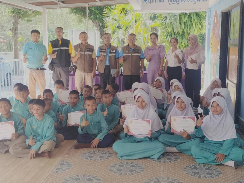 ประสานการปฏิบัติกับ นางนงเยาว์ จันทร์เพชรศรี ผู้อำนวยการโรงเรียนบ้านพรุหลุมพี หมู่ 4 ต.สะกอม อ.เทพา จว.สงขลา ตามโครงการสถานศึกษาสีขาว ปลอดยาเสพติด และอบายมุข เพื่อให้ความรู้เกี่ยวกับโทษและพิษภัยของยาเสพติด สร้างภูมิคุ้มกันและการป้องกันการแพร่ระบาดของยาเสพติดในสถานศึกษา รวมทั้งการสอดแทรกกิจกรรมเทิดทูนสถาบันหลักของชาติ แก่เด็กนักเรียน