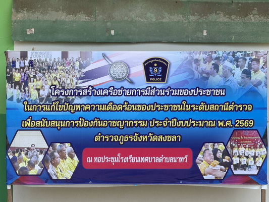 นำเครือข่ายภาคประชาชนเข้ารับการอบรม ตามโครงการสร้างเครือข่ายการมีส่วนร่วมของประชาชนในการแก้ไขปัญหาความเดือดร้อนของประชาชนในระดับ สถานีตำรวจ เพื่อสนับสนุนการป้องกันอาชญากรรม ประจำปีงบประมาณ 2569 ของ ภ.จว.สงขลา