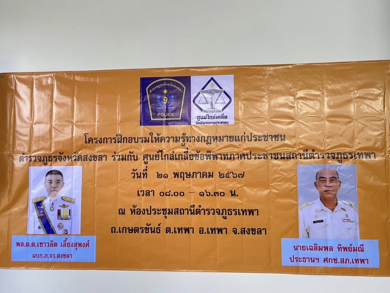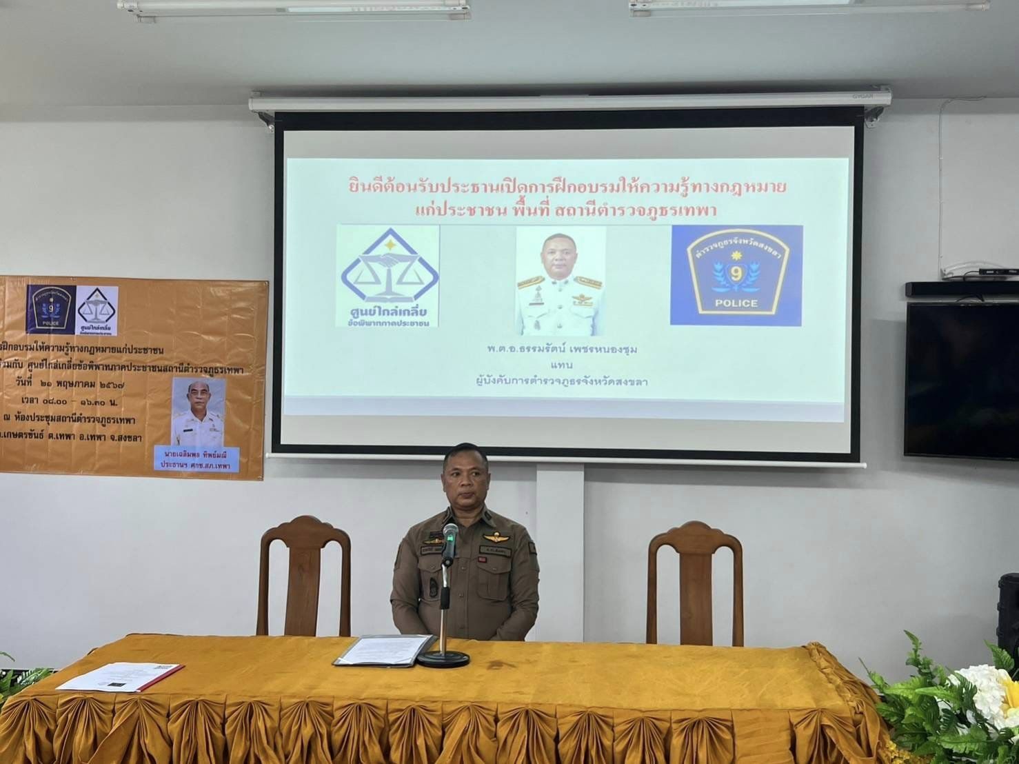 เป็นผู้แทน พล.ต.ต.เชาวลิต เลี้ยงสุพงศ์ ผบก.ภ.จว.สงขลา ประธานในพิธี เปิดโครงการฝึกอบรมให้ความรู้ทางกฎหมายแก่ประชาชน โดย ตำรวจภูธรจังหวัดสงขลา ร่วมกับ ศูนย์ไกล่เกลี่ยข้อพิพาทภาคประชาชนสถานีตำรวจภูธรเทพา