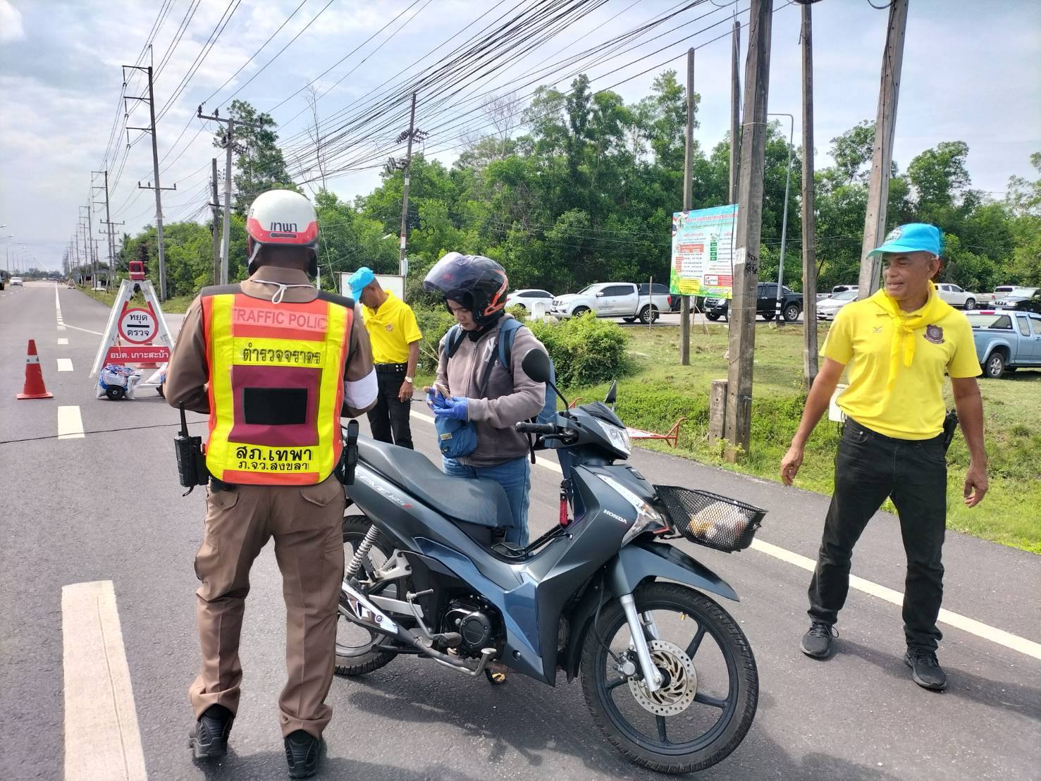 ร่วมทำกิจกรรมมอบหมวกนิรภัยและให้ความรู้เพื่อรณรงค์การขับขี่ปลอดภัยแก่ประชาชนผู้เดินทาง ถือปฎิบัติตามกฎหมายจราจร ตามโครงการ จิตอาสาจราจร รณรงค์การขับขี่ปลอดภัยสวมหมวกนิรภัย เพื่อลดอุบัติเหตุจราจรทางบก ในช่วงเทศกาลสงกรานต์ พ.ศ. 2568
