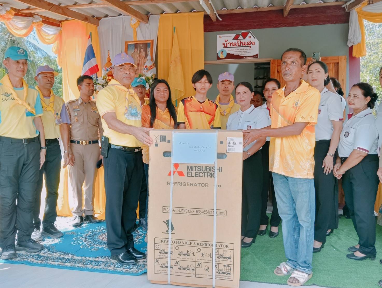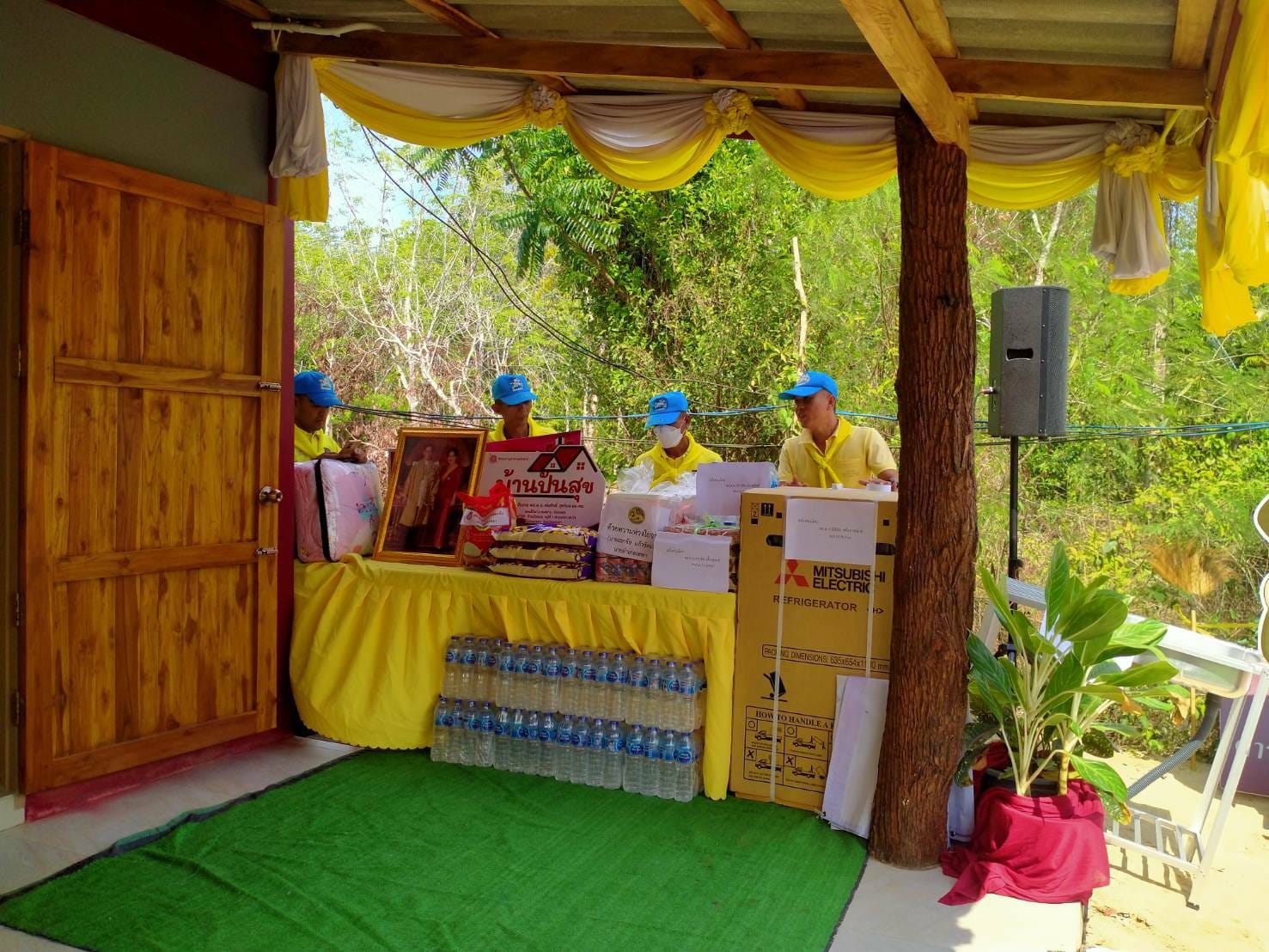 บ้านเลขที่ 89 ม.1 ต.เกาะสะบ้า อ.เทพา จว.สงขลา พร้อมสิ่งของอุปโภค บริโภค ไว้ใช้ในครัวเรือน ให้กับ นายสยาม ไชยเพชร และครอบครัว