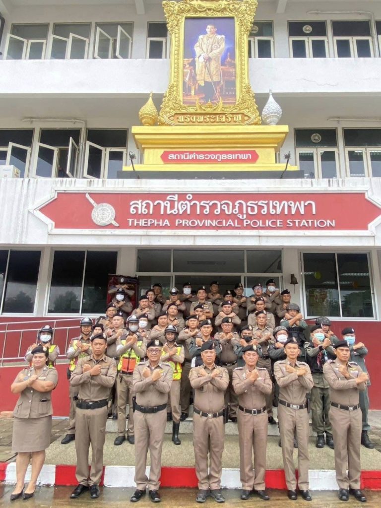 เมื่อวันที่ 26 ธ.ค. 2566 เวลา 08.45 น. พ.ต.อ.ธรรมรัตน์ เพชรหนองชุม ผกก.สภ.เทพา พร้อมด้วย พ.ต.ท.สุรเดช เส็นยีหีม รอง ผกก.ป.สภ.เทพา , พ.ต.ท.ชิต สังข์แก้ว รอง ผกก(สอบสวน)สภ.เทพา , พ.ต.ท.วรรณพงษ์ วงษ์สุวรรณ รอง ผกก. สส.สภ.เทพา , พ.ต.ท.บุญธรรม มากมณี สว.สส.สภ.เทพา , พ.ต.ท.วิสันต์ ดิสถาพร สวป.สภ.เทพา , พ.ต.ต.หญิง รัตณา มะหันตะกิจ สว.อก.สภ.เทพา และข้าราชการตำรวจในสังกัด