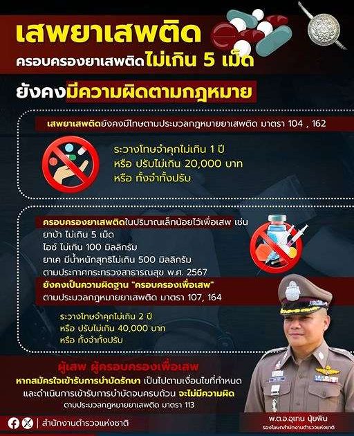 âāļāļēāļĢāđāļŠāļāļĒāļēāđāļŠāļāļāļīāļāļĒāļąāļāļāļāļĄāļĩāđāļāļĐāļāļĒāļđāđāļāļēāļĄāļāļĢāļ°āļĄāļ§āļĨāļāļāļŦāļĄāļēāļĒāļĒāļēāđāļŠāļāļāļīāļ āļĄāļēāļāļĢāļē 104, 162 āļĄāļĩāđāļāļĐāļāļģāļāļļāļāđāļĄāđāđāļāļīāļ 1 āļāļĩ āļŦāļĢāļ·āļāļāļĢāļąāļāđāļĄāđāđāļāļīāļ 20,000 āļāļēāļ āļŦāļĢāļ·āļ āļāļąāļāļāļģāļāļąāđāļāļāļĢāļąāļ āđāļāđāļŦāļēāļāļāļđāđāđāļŠāļāļŠāļĄāļąāļāļĢāđāļāđāļāđāļēāļĢāļąāļāļāļēāļĢāļāļģāļāļąāļāļĢāļąāļāļĐāļēāđāļĨāļ°āđāļāđāļāđāļāļāļēāļĄāđāļāļ·āđāļāļāđāļāļāļĩāđāļāļģāļŦāļāļ āđāļĨāļ°āļāļģāđāļāļīāļāļāļēāļĢāđāļāđāļēāļĢāļąāļāļāļēāļĢāļāļģāļāļąāļāļāļāļāļĢāļāļāđāļ§āļ āļāđāļāļ°āđāļĄāđāļĄāļĩāļāļ§āļēāļĄāļāļīāļ āļāļēāļĄāļāļĢāļ°āļĄāļ§āļĨāļāļāļŦāļĄāļēāļĒāļĒāļēāđāļŠāļāļāļīāļ āļĄāļēāļāļĢāļē 113 āļāļąāđāļāļāļĩāđ āļāļāļĨāļāđāļāļĐāļāļēāļāļāļāļŦāļĄāļēāļĒāļĒāļąāļāļāļāļĄāļĩāļāļĒāļđāđ āļāļķāđāļāļāļāļŦāļĄāļēāļĒāļāļĩāđāļĄāļĩāđāļāļāļāļēāļĢāļĄāļĒāđāļāļĩāđāļāļ°āļāđāļ§āļĒāđāļŦāļĨāļ·āļ āđāļŦāđāđāļāđāļēāļĢāļąāļāļāļģāļāļąāļāđāļāļĒāđāļĄāđāđāļāļēāļāļīāļāļāļēāļāļāļēāļāļē āļŦāļĢāļ·āļāļāļēāļĢāļĨāļāļāļēāļĢāđāļāđāļāļāļēāļāļāļēāļāļĢāļĢāļĄāļāļāļāļāļđāđāđāļŠāļ (decriminalization) âāļĄāļāļāļāļđāđāđāļŠāļ āđāļāđāļāļāļđāđāļāđāļ§āļĒâ āđāļāđāļāļĢāļ°āļāļ§āļāļāļēāļĢāļāļēāļāļŠāļēāļāļēāļĢāļāļŠāļļāļāđāļĨāļ°āļŠāļļāļāļ āļēāļāđāļāļāļēāļĢāđāļāđāđāļāļāļąāļāļŦāļēāļāļđāđāđāļŠāļāļāļđāđāļāļīāļâ