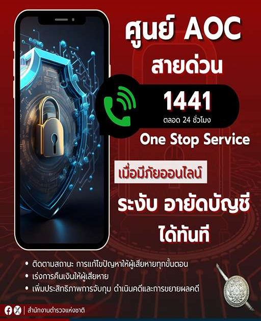 āļĢāļąāļāļāļēāļĨāļāļąāļāļāļąāđāļ “āļĻāļđāļāļĒāđ AOC 1441 āļŦāļĢāļ·āļ Anti Online Scam Operation Center” āđāļāļ·āđāļāļāļđāļĢāļāļēāļāļēāļĢāđāļāļāļēāļĢāļāđāļāļāļāļąāļāđāļĨāļ°āļāļĢāļēāļāļāļĢāļēāļĄāļāļēāļāļāļēāļāļĢāļĢāļĄāļāļāļāđāļĨāļāđ āđāļŦāđāļāļĢāļīāļāļēāļĢ one stop service āđāļāđāļāļĢāļ°āļāļēāļāļ